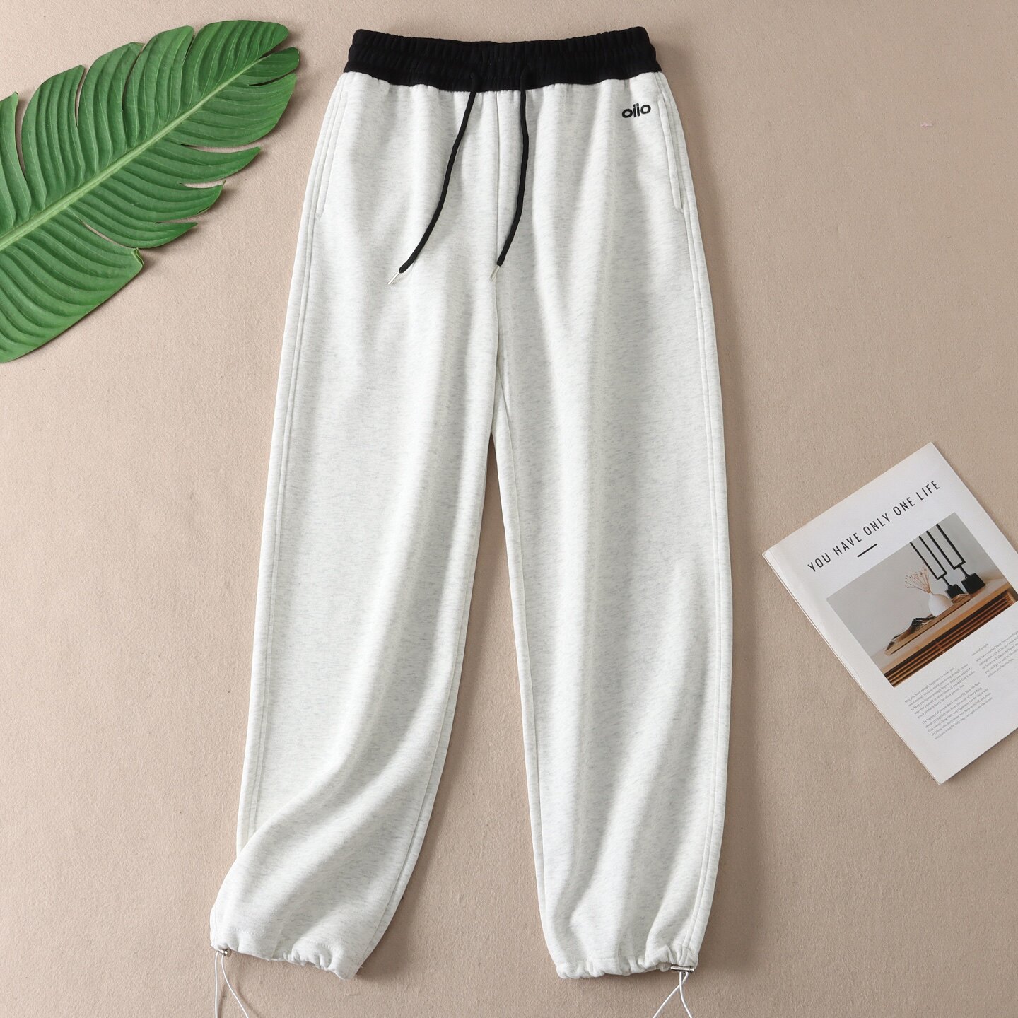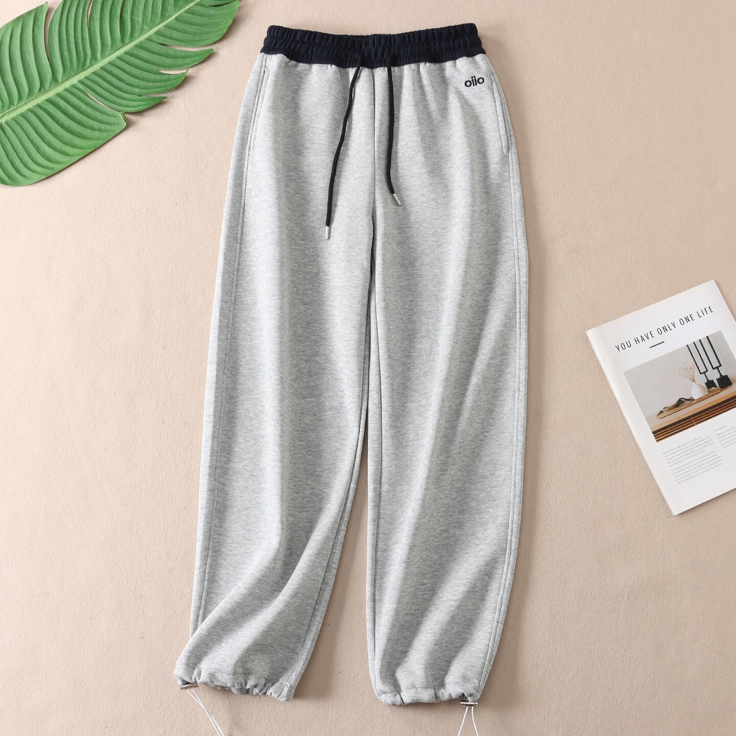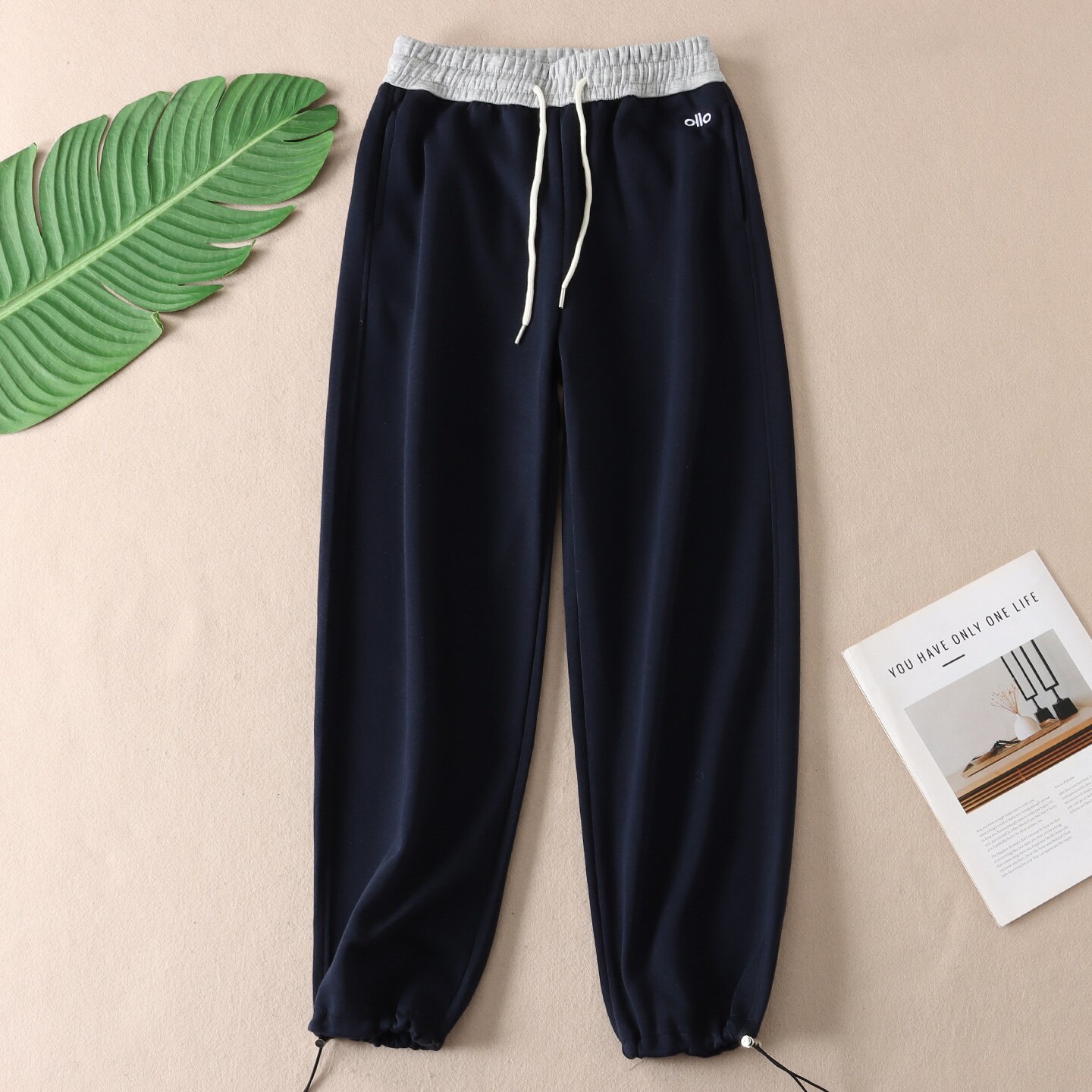淘宝两穿裤脚~美式休闲华棉卫裤秋撞色高腰时尚运动风松弛感长裤 W566
