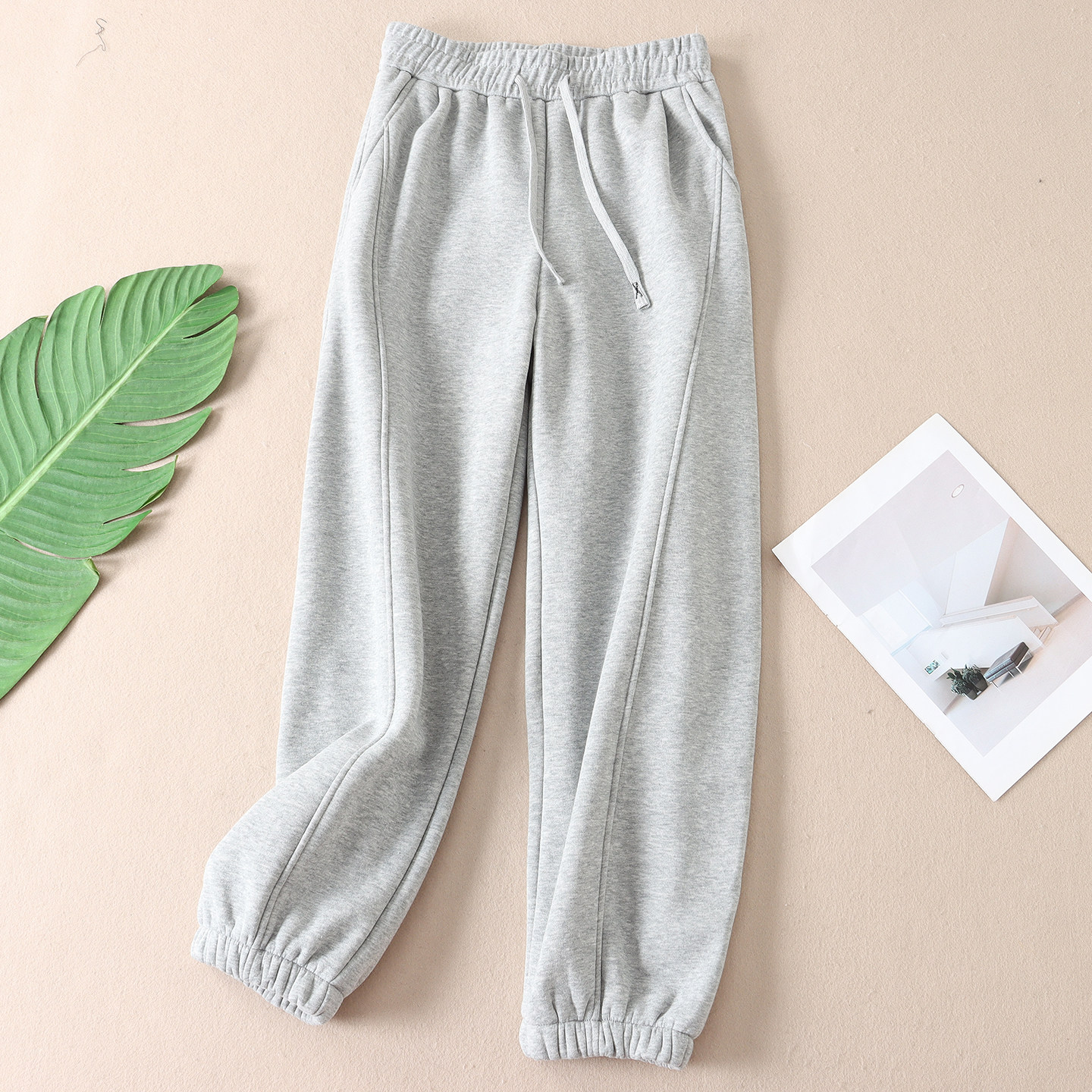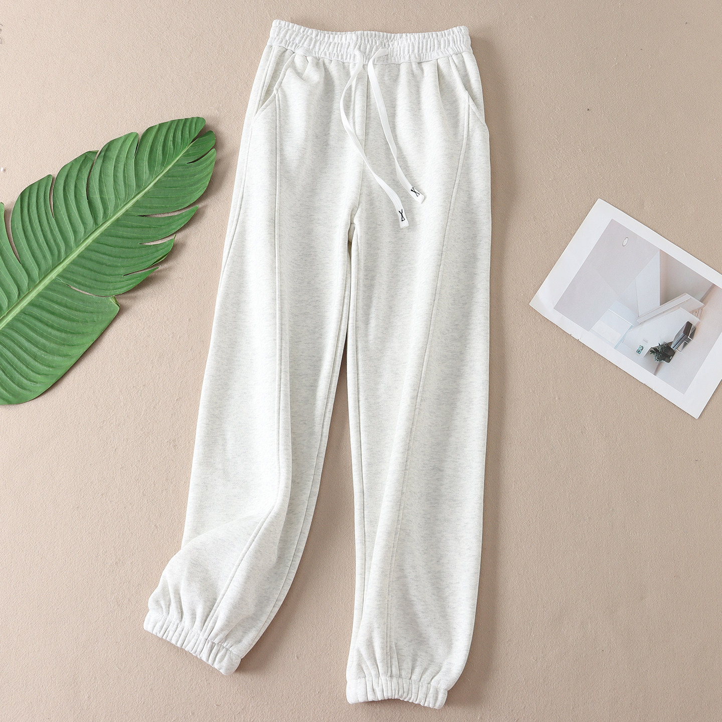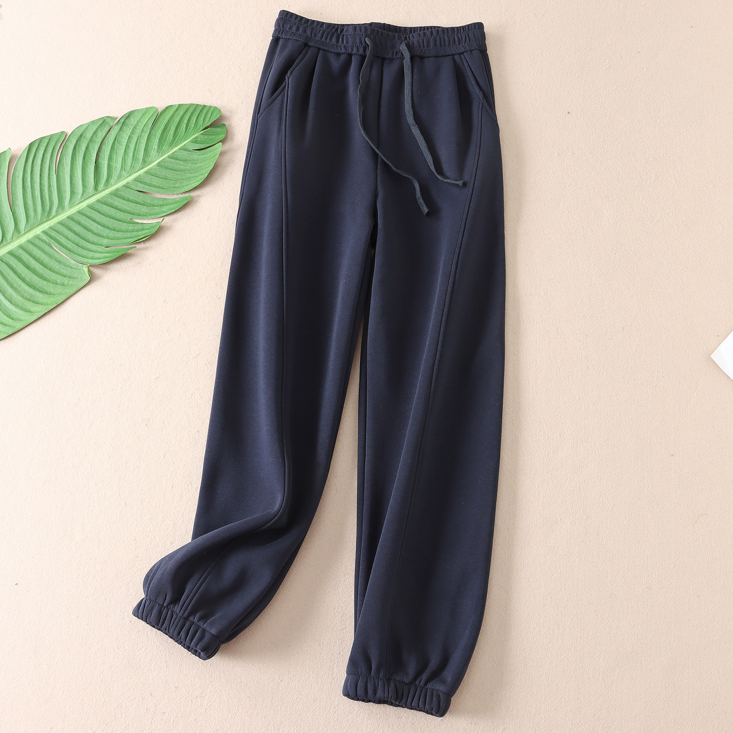 淘宝560克~高腰显瘦华棉卫裤女冬加厚绒保暖休闲运动束脚哈伦长裤B600