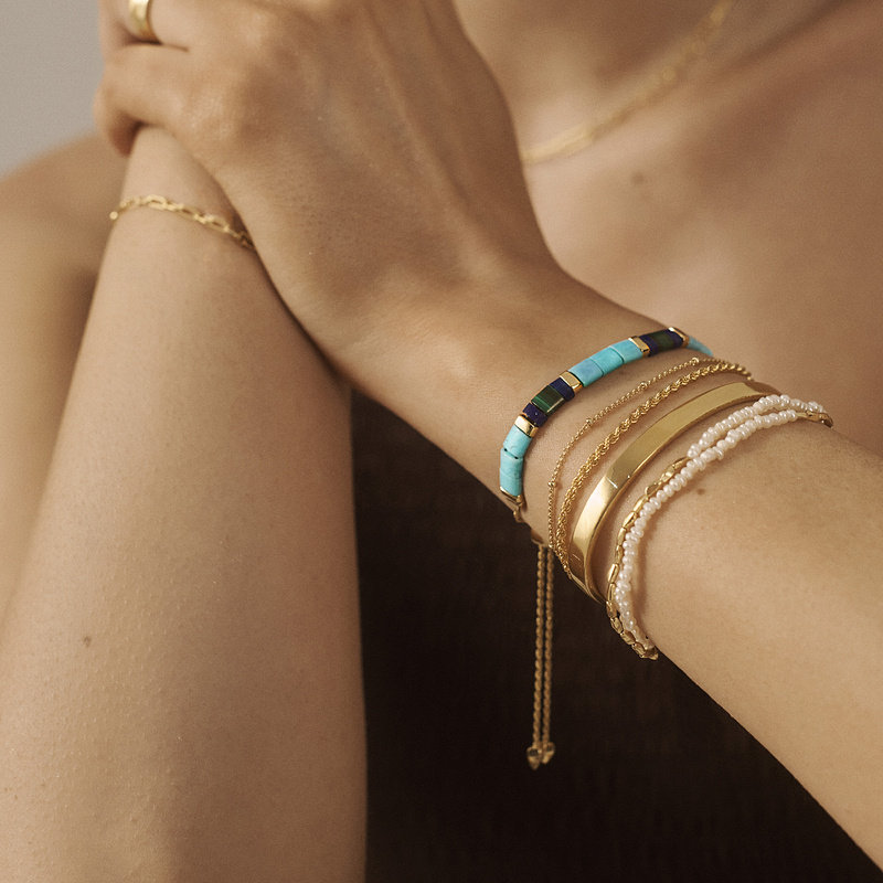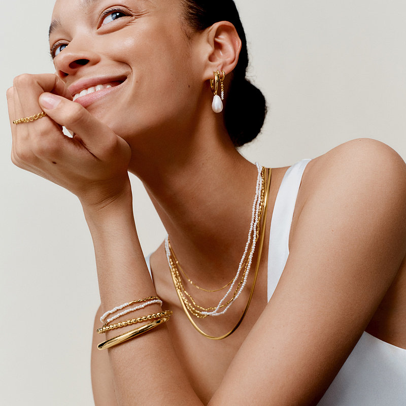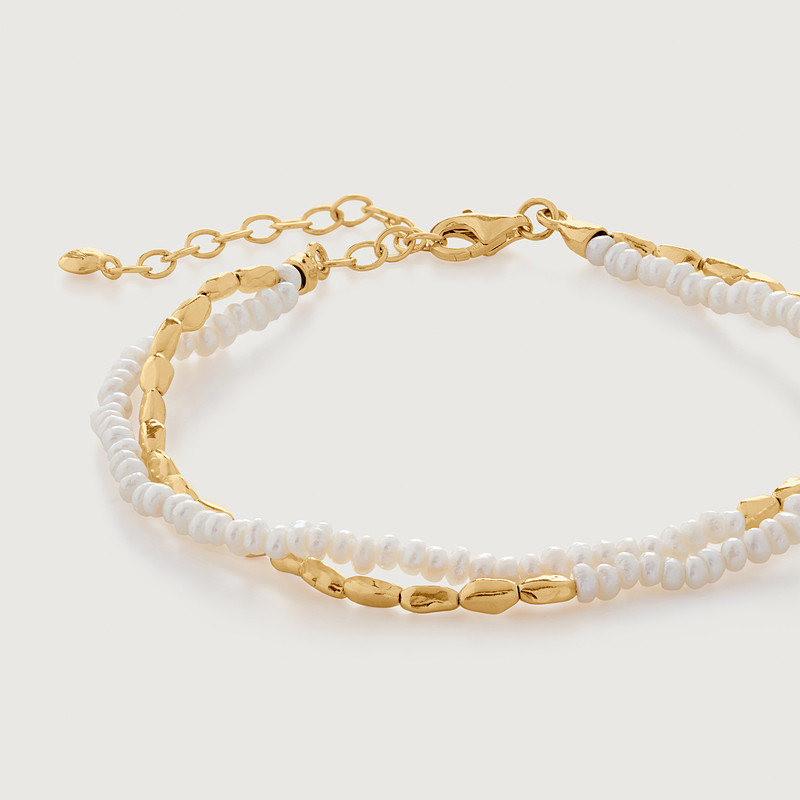 Monica Vinader Beads米粒珍珠双层手链是一款优雅精致的女士串珠手饰,融合现代简约与经典柔美风格。采用优质米粒珍珠与细腻金属珠交替串联,双层设计增添层次感,佩戴轻盈舒适,适合日常搭配或正式场合。手链延续品牌标志性的可定制理念,支持个性化镌刻,赋予独特情感意义。链条可调节长度,满足不同手腕需求,展现低调奢华的英伦气质。无论是单独佩戴还是叠搭其他手链,都能为整体造型增添一抹温婉光泽,是送礼或自戴的理想之选,彰显女性柔美与自信魅力。