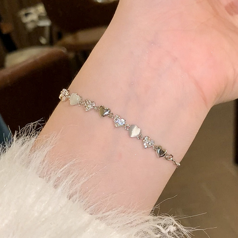 淘高级感仿白贝母四叶草手链轻奢小众精致不掉色手饰七夕送女友礼物