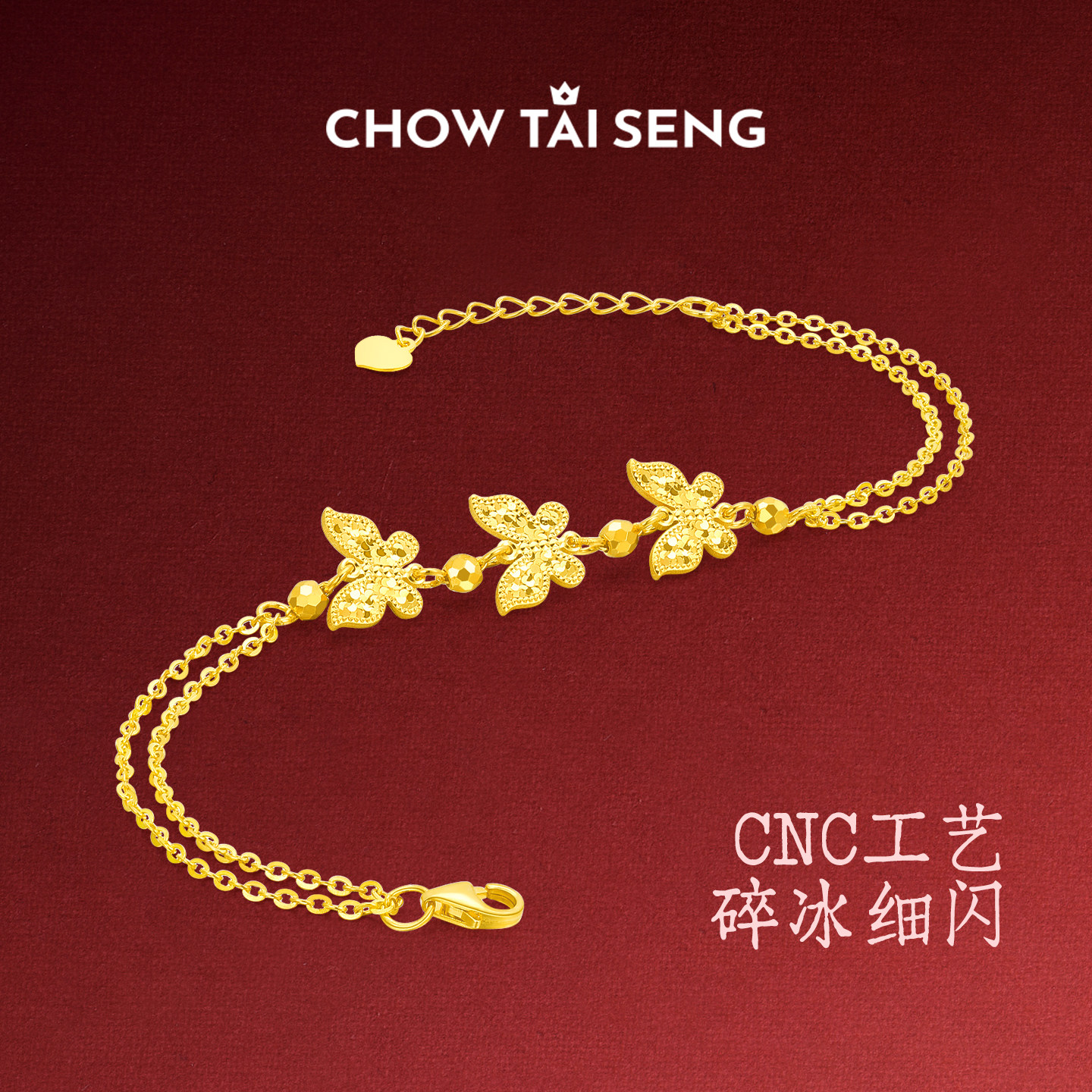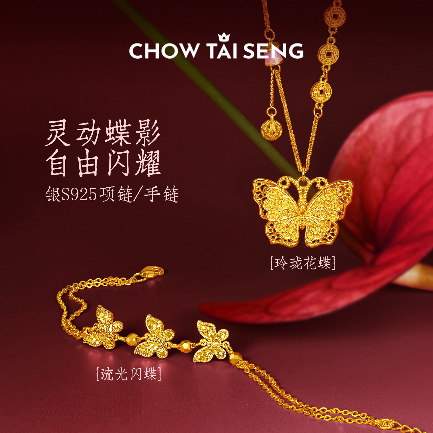 天猫周大生流光闪蝶碎碎冰手链女纯银S925轻奢高级手饰生日礼物送女友
