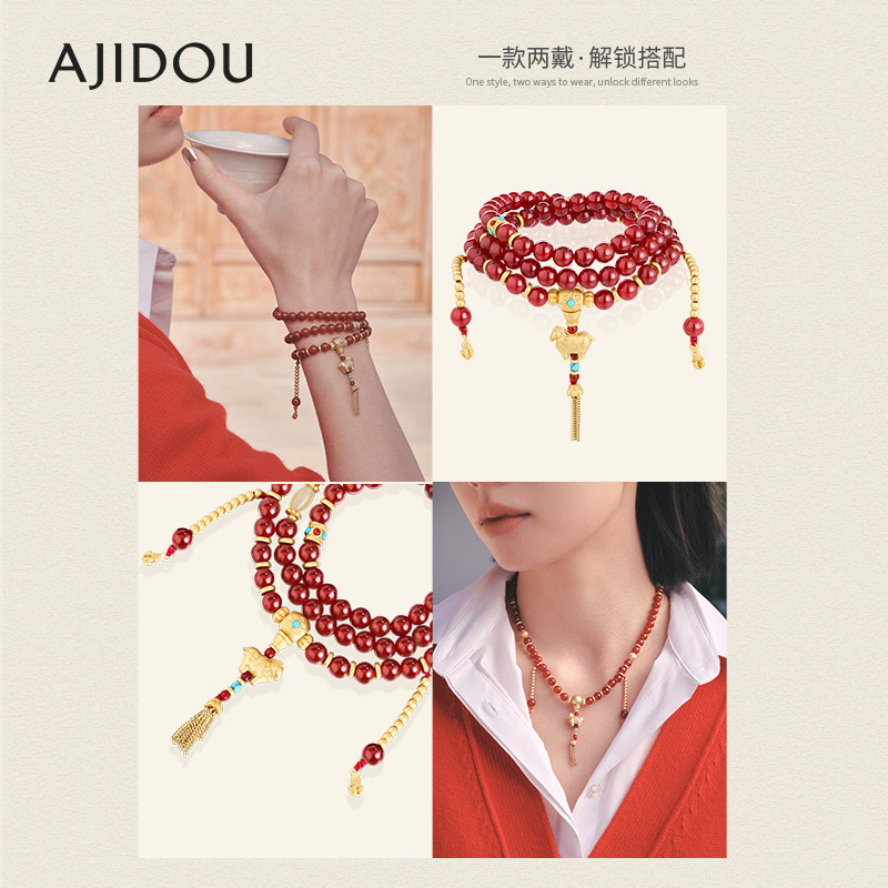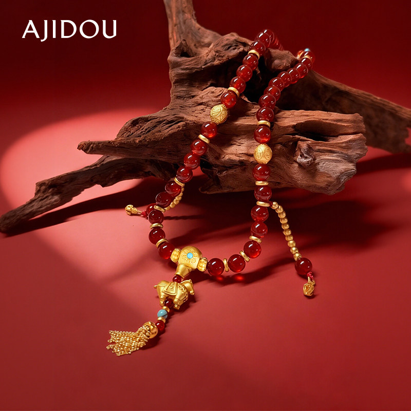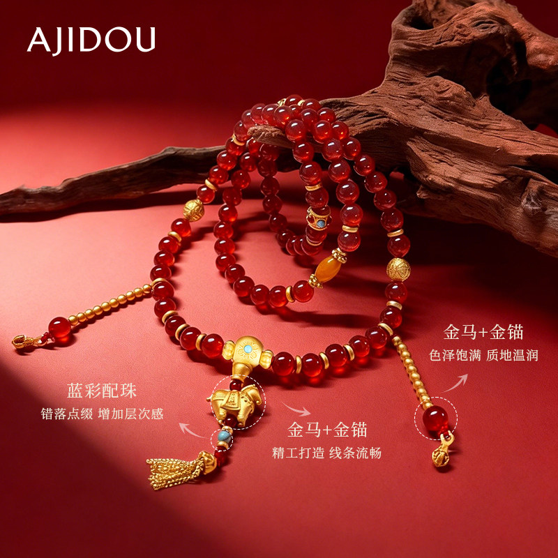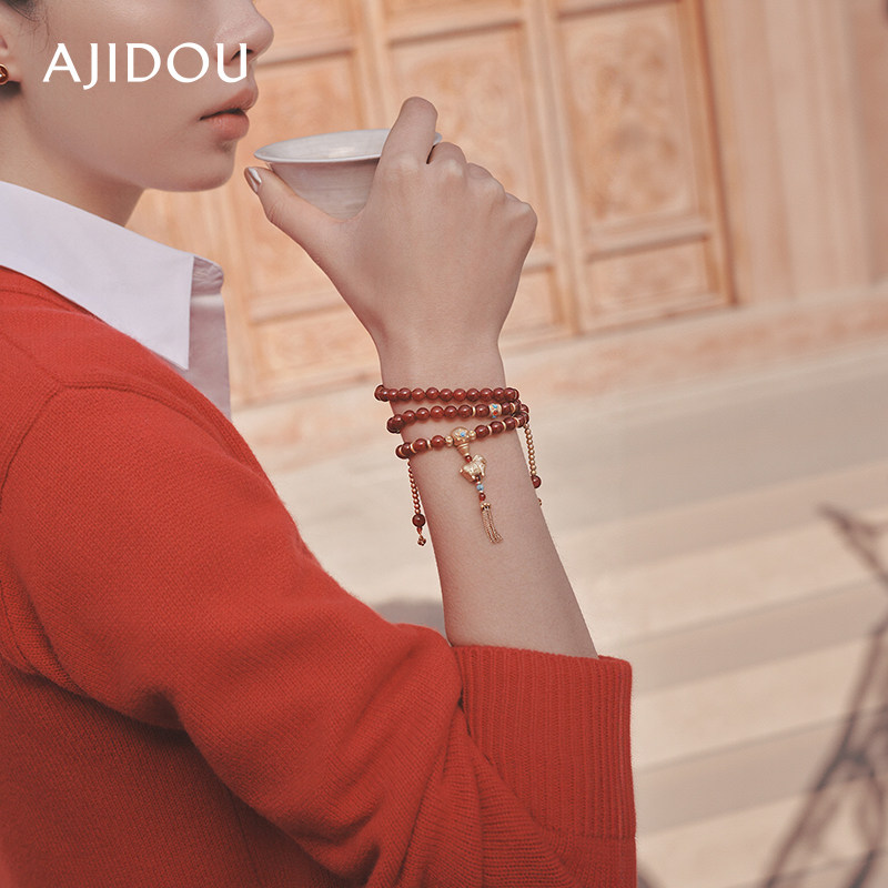 天猫AJIDOU阿吉豆玄马迎福系列玛瑙叠戴串珠手链复古国风手串轻奢手饰