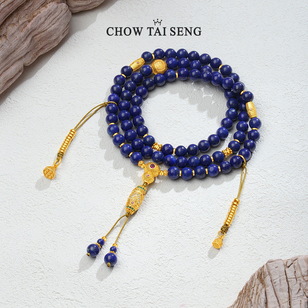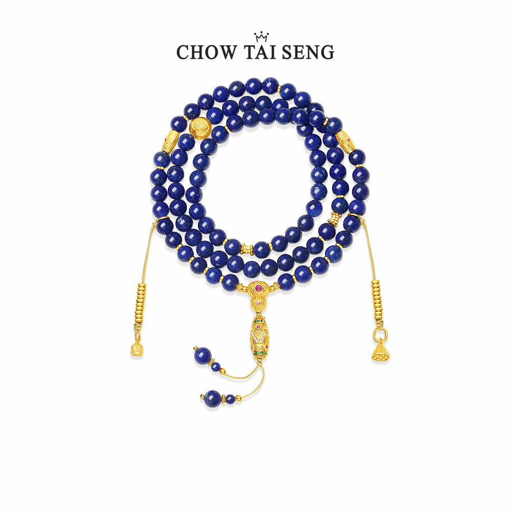 天猫周大生瀚海拾星青金石手串串珠手持手饰纯银S925生日礼物送女友