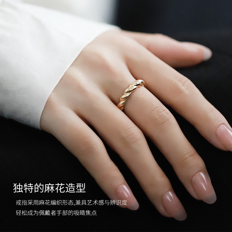 天猫LSTARA/爱丝塔 麻花戒指纯18K金素金戒环编织纽结手饰情侣礼物女