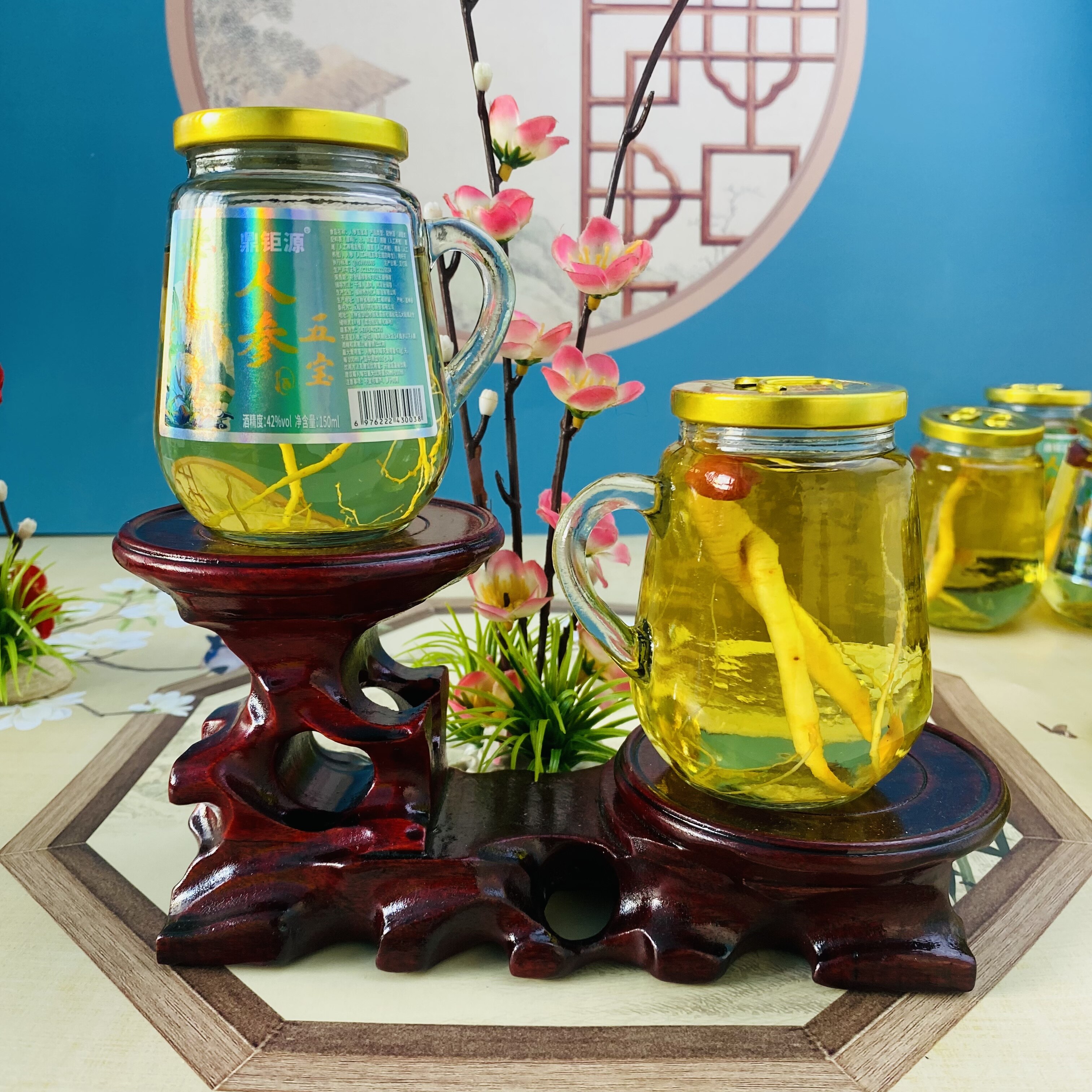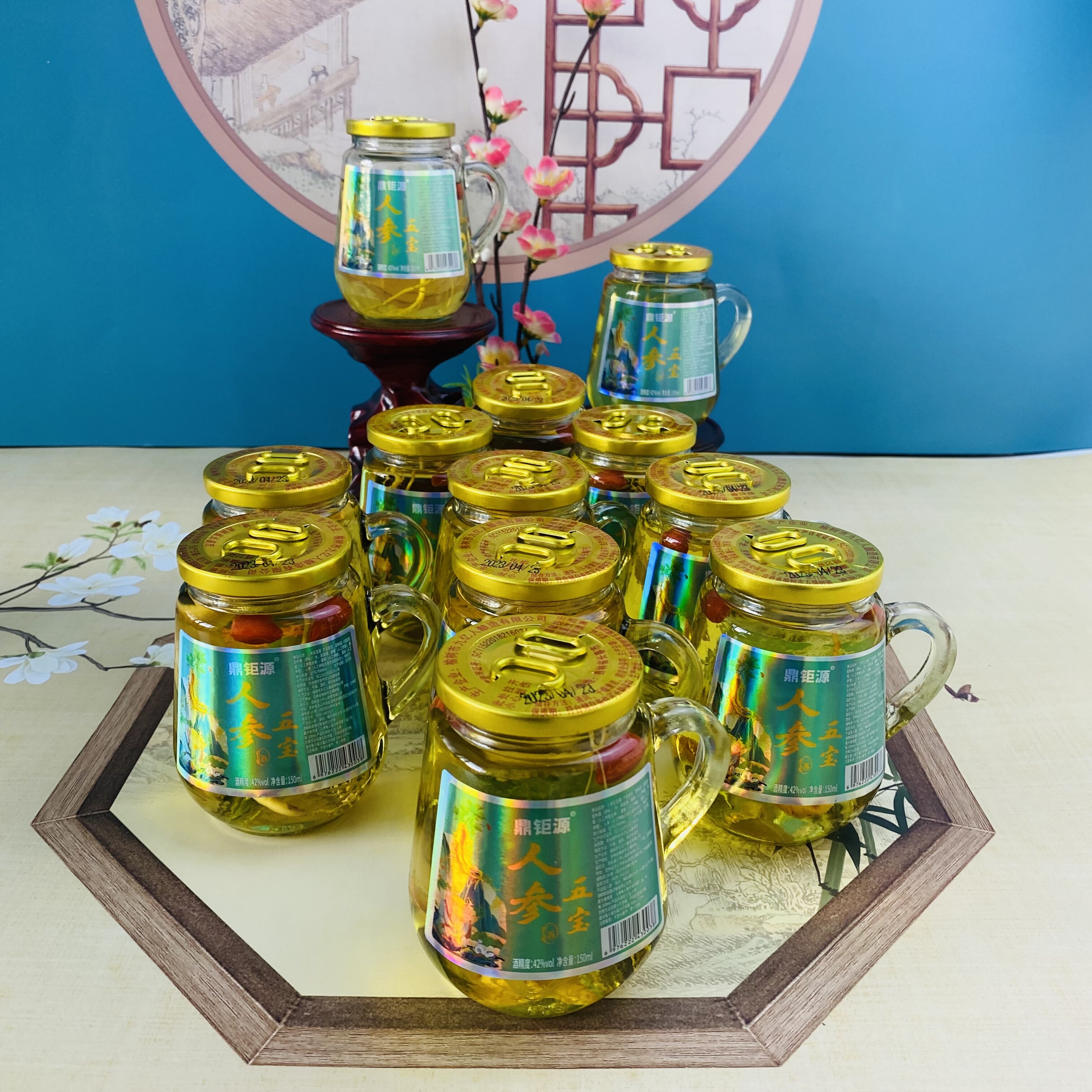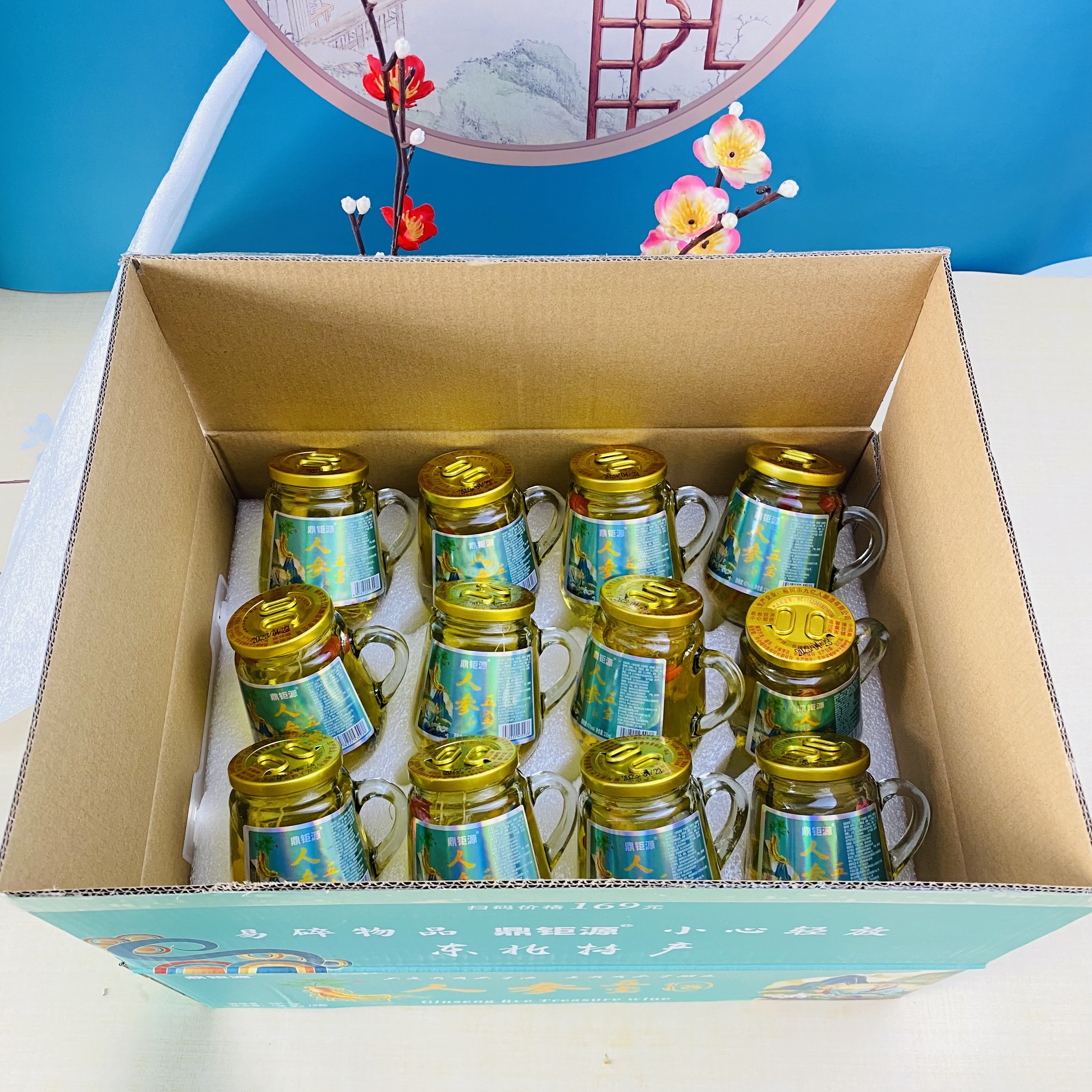 淘宝长白山人参五宝酒虫草鹿鞭酒42度粮食酒150ml*12瓶礼盒枸杞养生酒