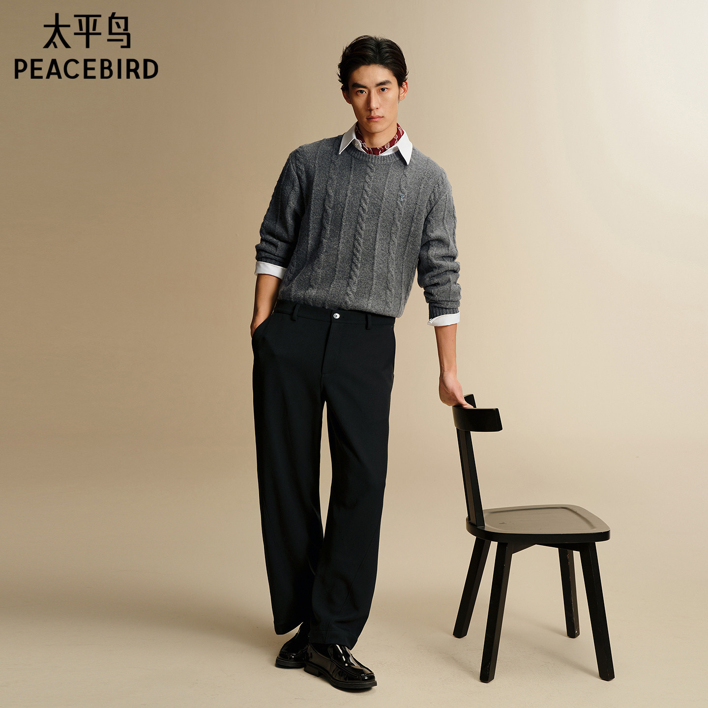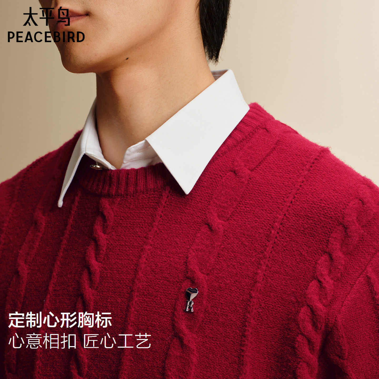 天猫【糯米绒】太平鸟男装 休闲毛衫男士26春新款经典绞花宽松毛衣潮