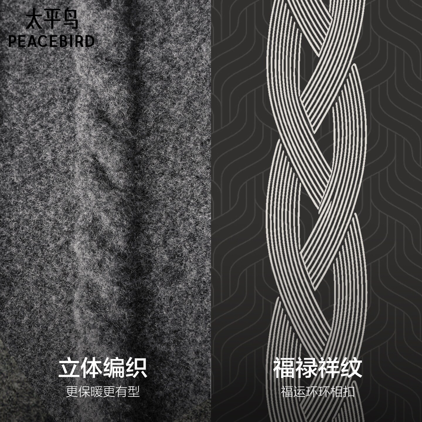 天太平鸟男装 休闲毛衫26春时尚新款经典绞花半拉链含羊毛宽松毛衣