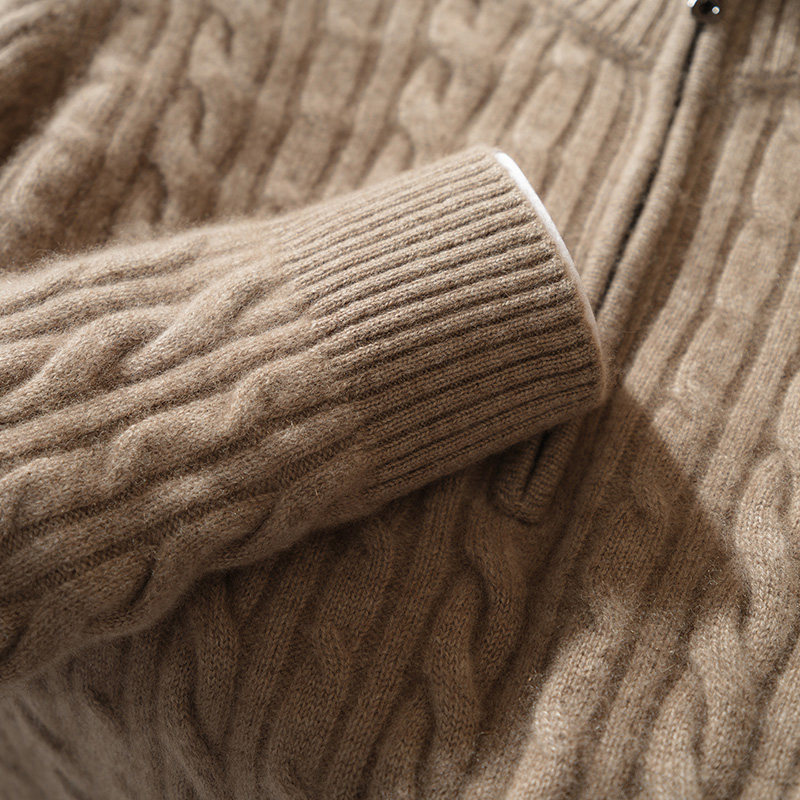 柯沐源2025新款男士山羊绒衫,精选优质山羊绒材质,触感柔软细腻,保暖性卓越。采用经典半高领拉链设计,兼顾防风与穿脱便利,贴合颈部更舒适。衣身融入精致麻花绞花纹理,立体有型,彰显复古英伦格调。加厚针织工艺提升锁温效果,适合秋冬贴身打底或外穿。版型修身不臃肿,搭配大衣、夹克皆宜,轻松打造儒雅绅士风范。多色可选,满足不同穿搭需求。柯沐源以匠心工艺与高端面料,为现代男性提供兼具温度与风度的秋冬必备单品,是追求品质生活的理想之选。
