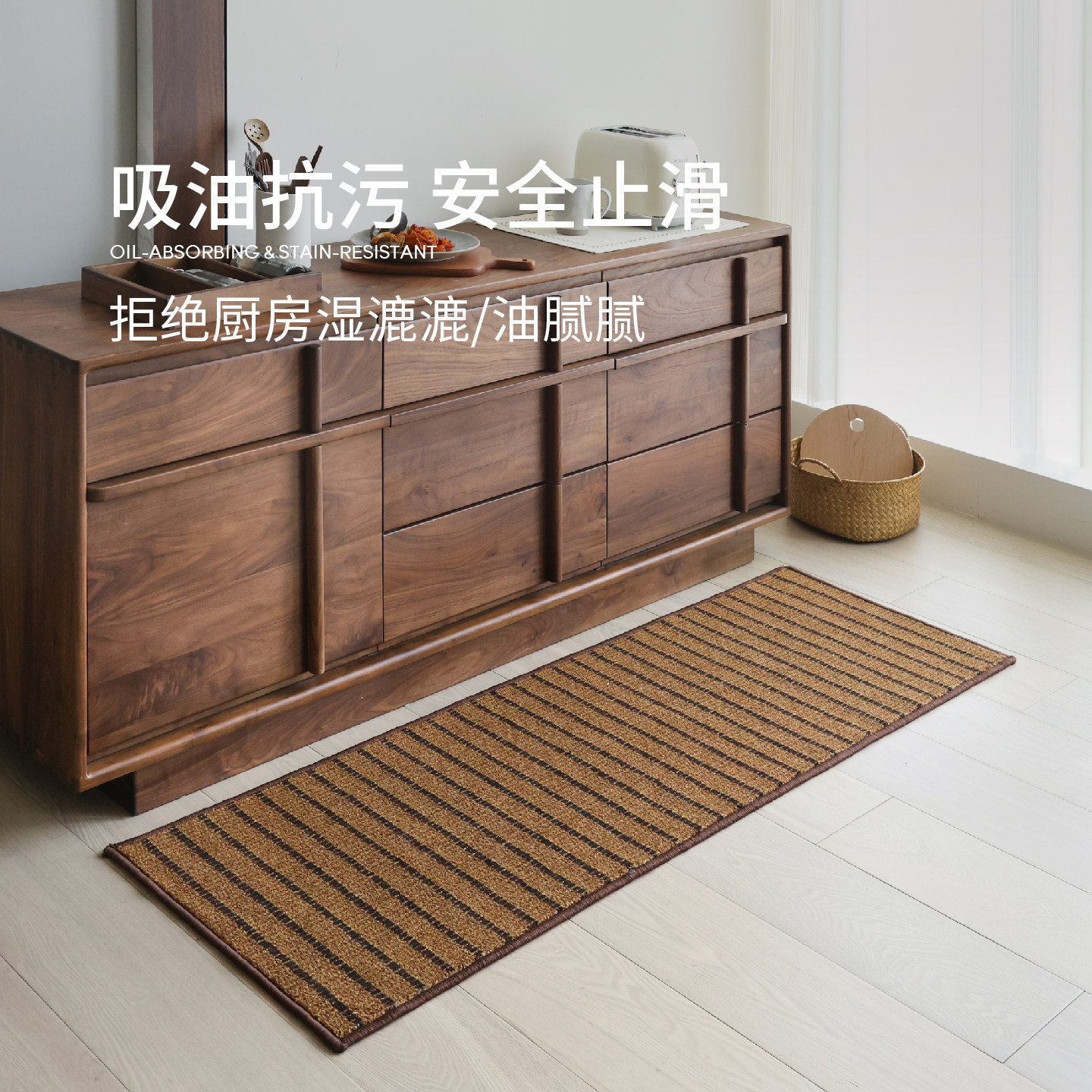 赛波斯可水洗厨房垫地垫防水吸油耐脏防滑简约轻奢高级感长条地毯