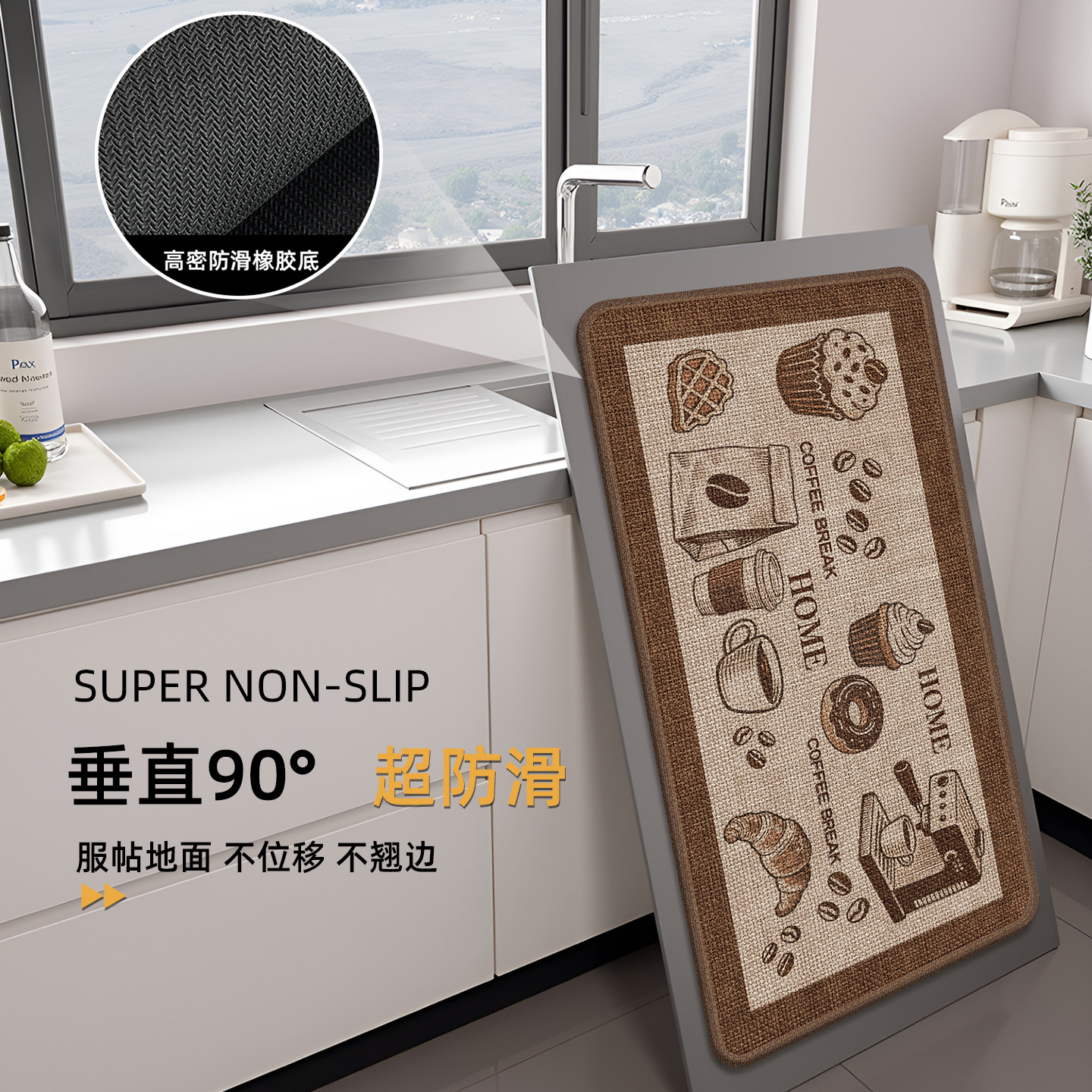 赛波斯可水洗厨房垫地垫防水吸油耐脏防滑简约轻奢高级感长条地毯