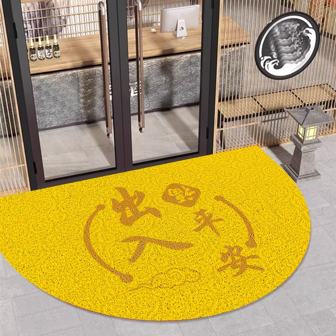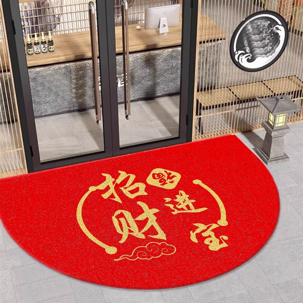 这款半圆形金色丝圈地垫,专为招财进宝寓意设计,适用于商铺门口、家庭入户门等场所。采用高品质金色丝圈材质,耐磨防滑,有效刮除鞋底泥沙,保持室内洁净。半圆造型贴合门框,美观实用,不占空间。表面纹理细腻,踩感舒适,底部防滑底背设计,稳固不移位,安全耐用。金色象征财富与吉祥,寓意“进门见金,招财纳福”,既提升家居或商铺的格调,又增添美好寓意。适用于玄关、门口、走廊等多种场景,是兼具实用性与装饰性的理想门垫选择。