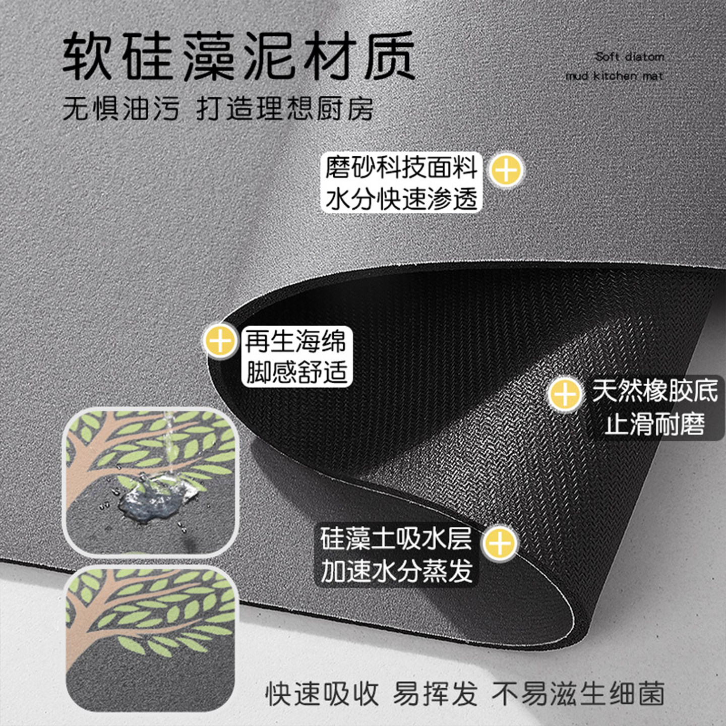 淘宝硅藻泥厨房地垫防滑防油可擦免洗吸水吸油耐脏脚垫防水大面积地垫