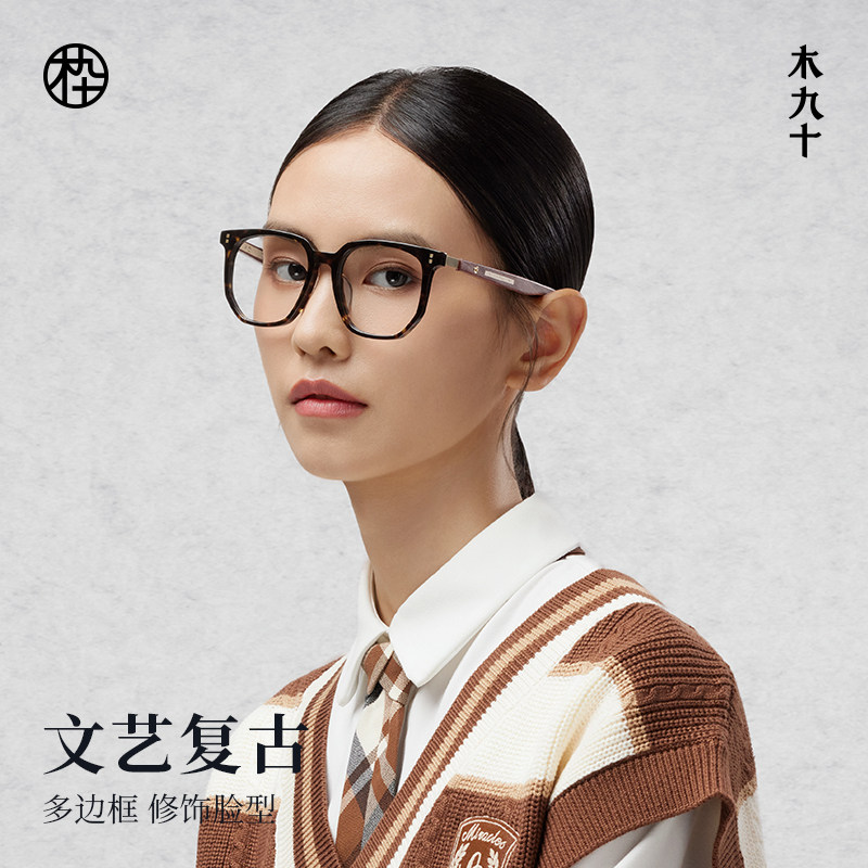 天猫木九十板材眼镜框玳瑁色木质镜腿可配近视镜片男女镜架MJ101FG020