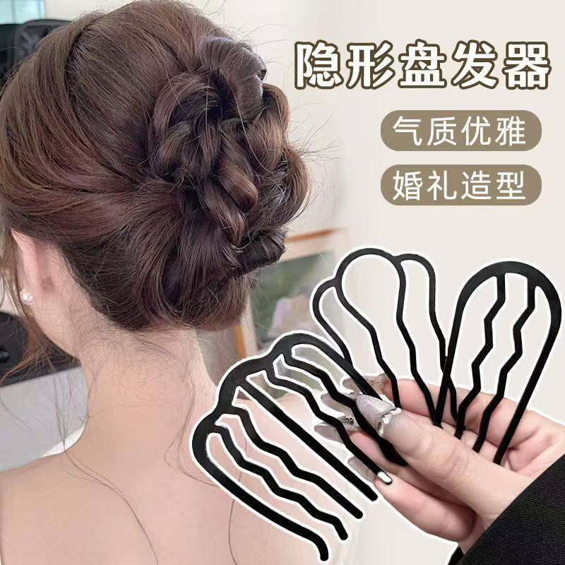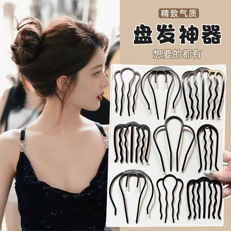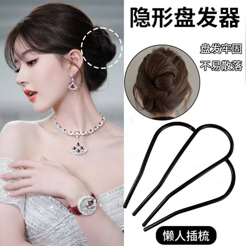 淘宝精致发簪女懒人盘发神器丸子头四齿插梳发梳u型固定头饰发卡碎发