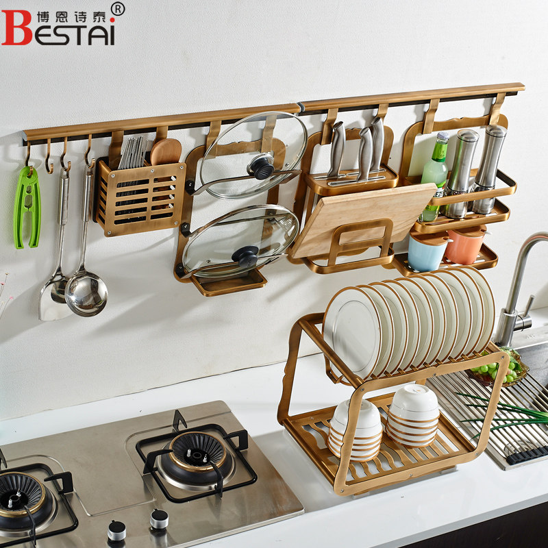 淘宝太空铝厨房置物架壁挂仿古厨卫挂架刀架调味料锅盖架厨房挂件挂杆