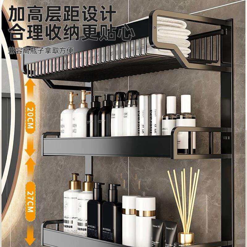 卫生间置物架毛巾架免打孔浴室厕所洗手间浴巾架太空铝厨卫挂件