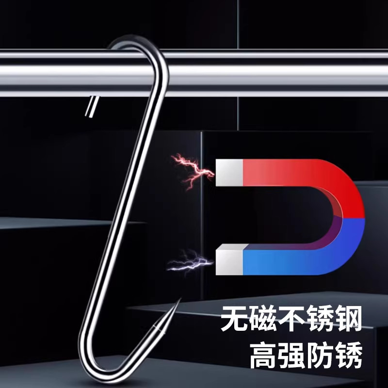 不锈钢尖头腊肉钩,精选优质不锈钢材质,防锈耐腐蚀,坚固耐用,适用于家庭及商用场景。其尖头设计便于穿刺,轻松挂取腊肉、咸肉、烤鸭、鱼干等食材,晾晒、风干更稳固。钩身光滑无毛刺,安全卫生,易于清洁,是厨房和晾晒必备工具。无论是传统腊味制作,还是日常食材悬挂收纳,都能高效便捷。多枚组合使用,可提升晾晒效率,节省空间。适用于阳台、厨房、肉铺等多种环境,兼具实用性与美观性,是现代家庭厨房的理想挂钩用品,让食材处理更省心、更卫生。