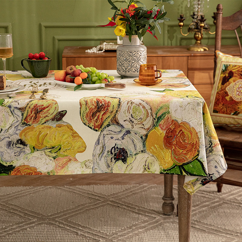 淘宝油画风唯美雪尼尔桌布防水防烫桌面保护盖布茶几防尘布家用可定制