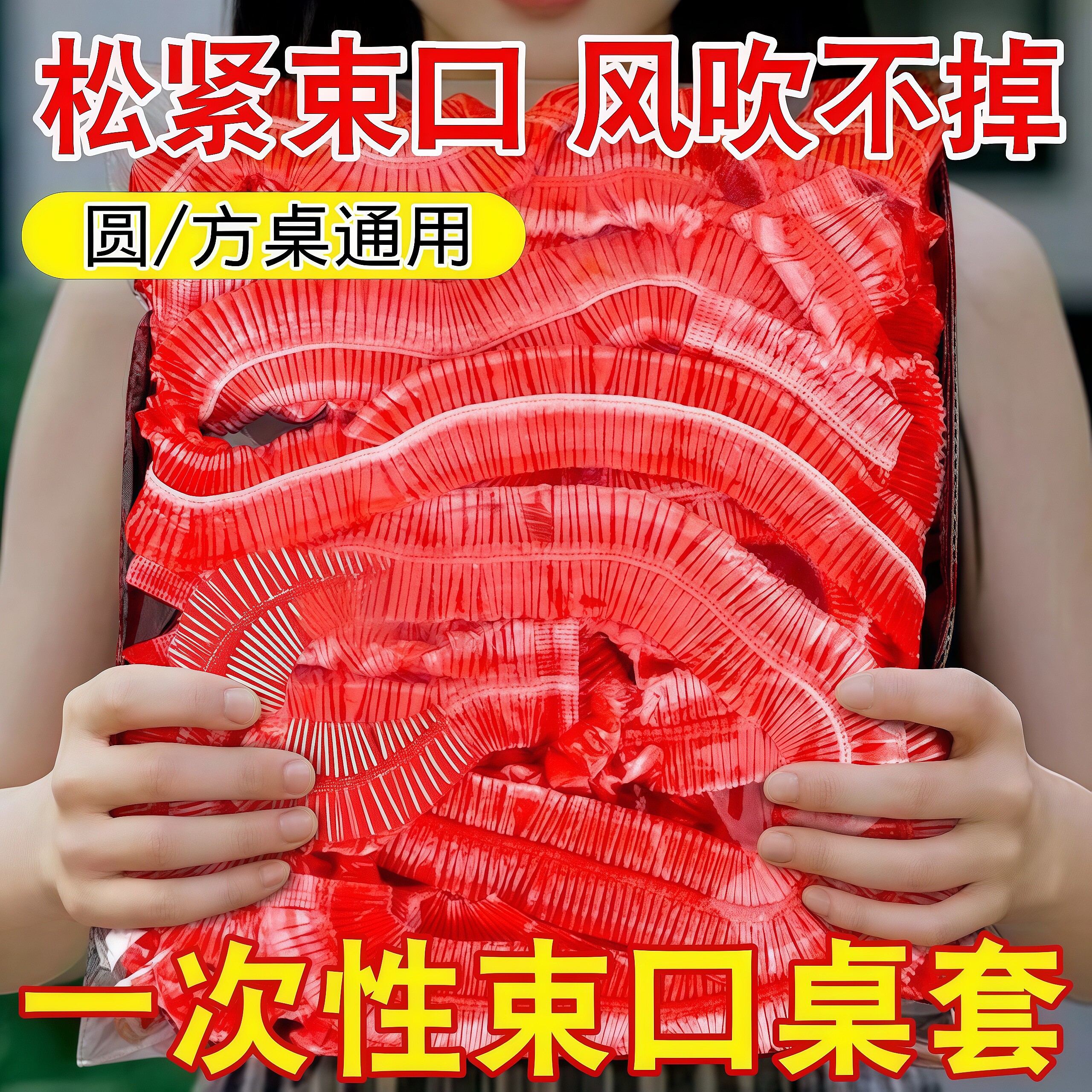 淘一次性桌布束口松紧带圆桌子红色塑料布薄膜结婚酒席寿宴乔迁火锅