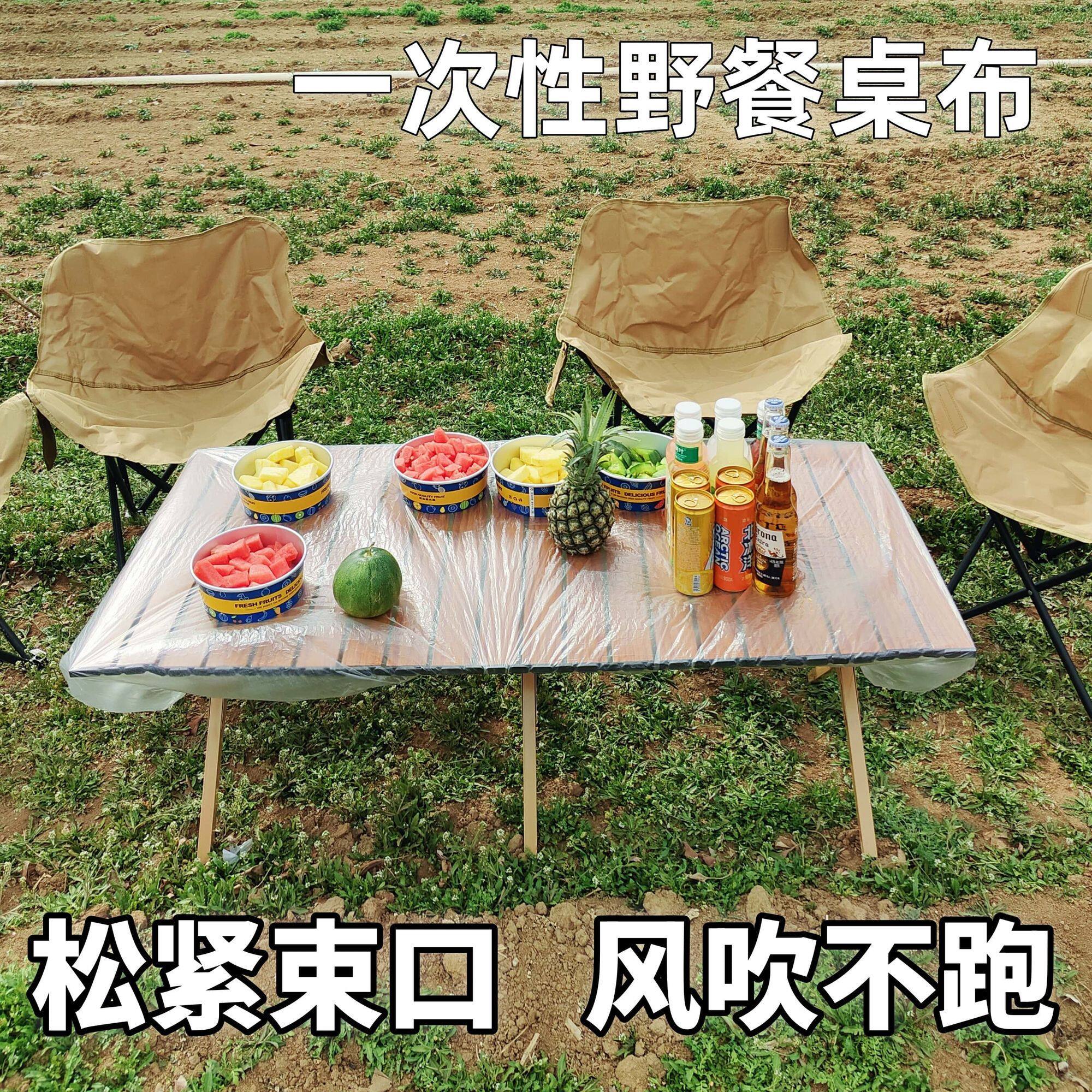 淘户外露营一次性桌布束口松紧带野餐蛋卷桌垫防油防水餐桌布长方形