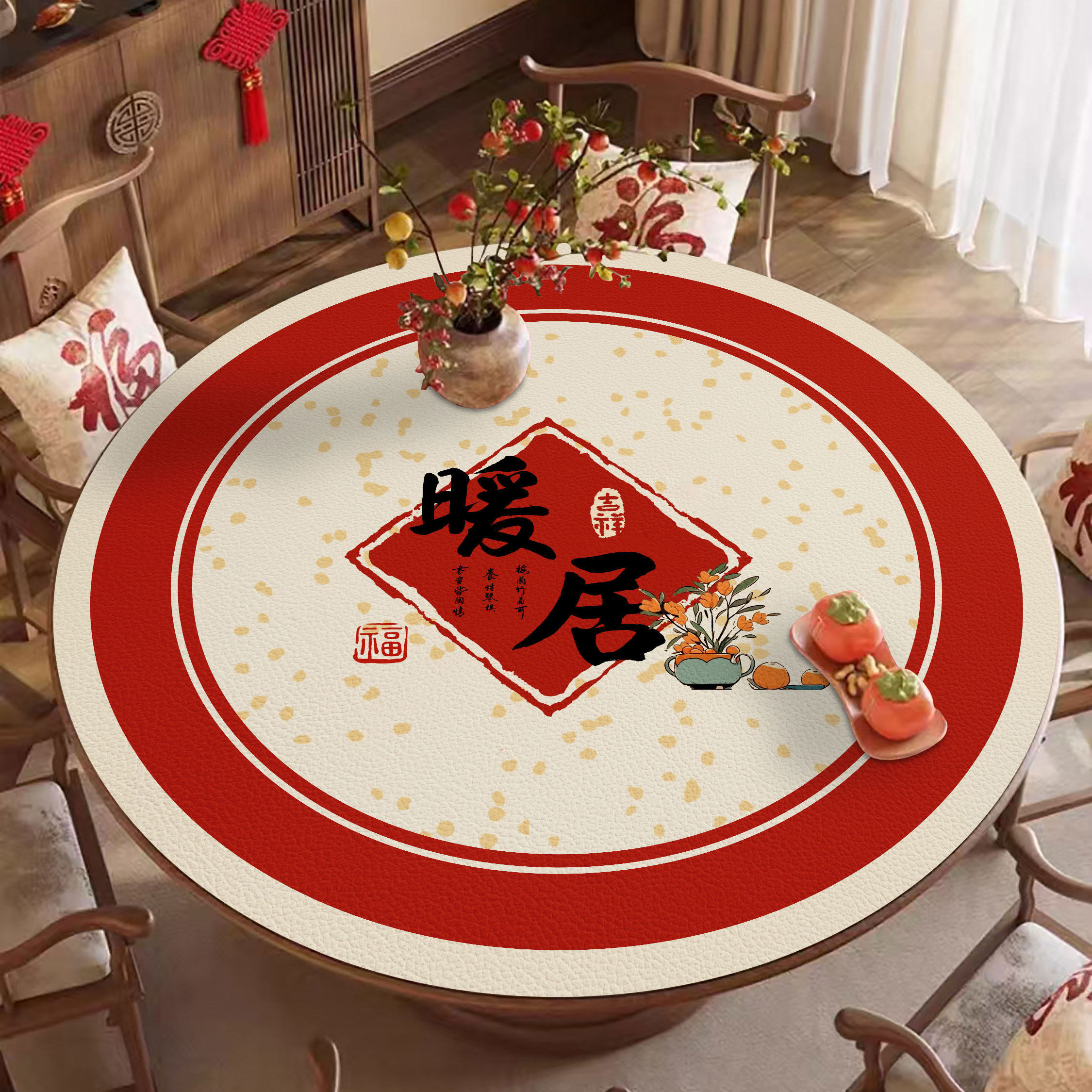 2026新年福字款圆桌垫,专为节日餐桌与日常使用设计,融合传统吉祥元素与现代实用功能。采用高品质环保材质,耐高温、防烫隔热,有效保护圆桌、茶几等台面免受餐具烫损或刮擦。表面精美印制“福”字图案,寓意新年纳福、吉祥如意,增添浓郁节日氛围。防滑底层设计,稳固贴合桌面,不易移位。易清洁、耐磨损,适用于多种家居风格。无论是年夜饭聚餐,还是日常用餐,这款圆桌垫既是实用保护垫,也是传递美好祝愿的家居点缀,让每一餐都充满温馨与福气。