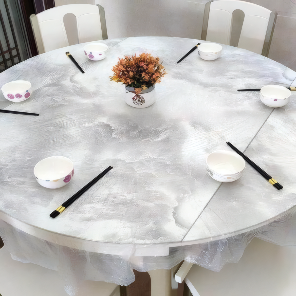 淘束口一次性桌布家用加厚松紧带桌布一次性免洗透明圆形长方形专用