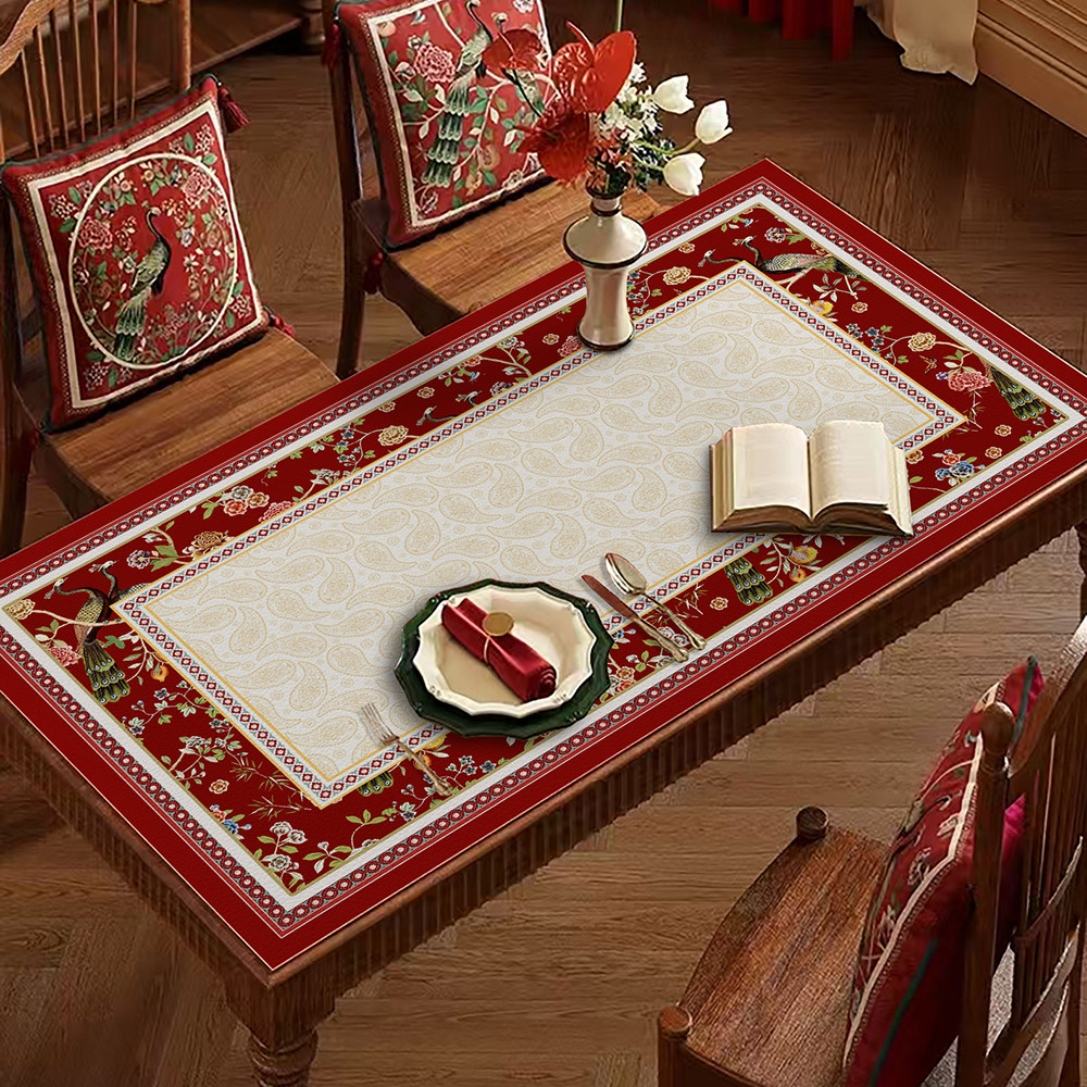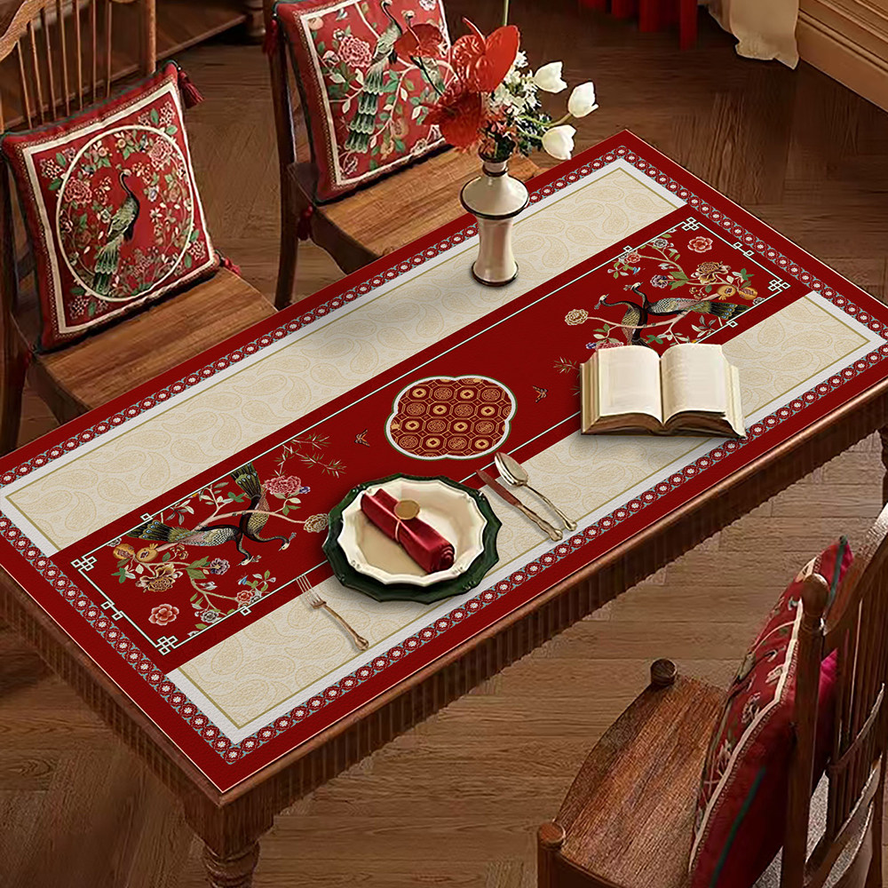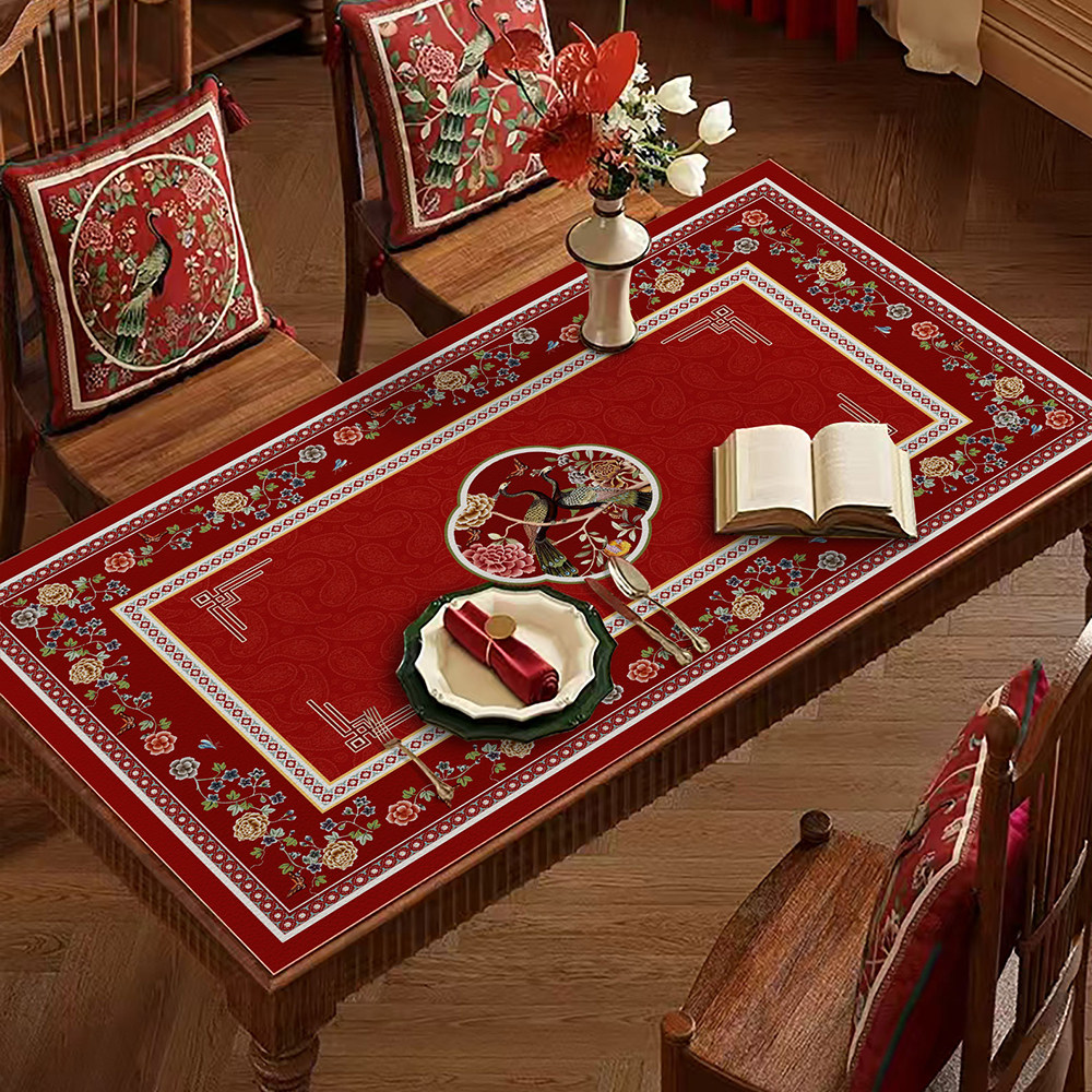 淘宝孔雀呈祥春节防水防油免洗皮革餐桌垫方形高颜值隔热垫防尘桌布
