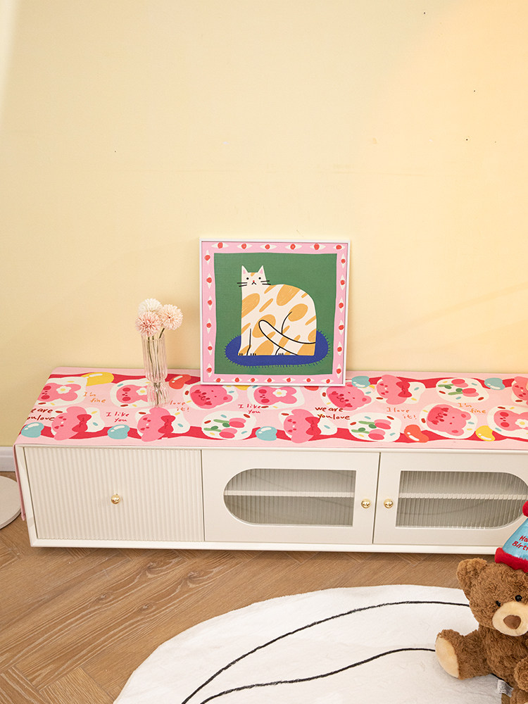 淘宝糖果色北欧风电视柜盖布防水棉麻桌旗桌布长方形边柜鞋柜防尘布
