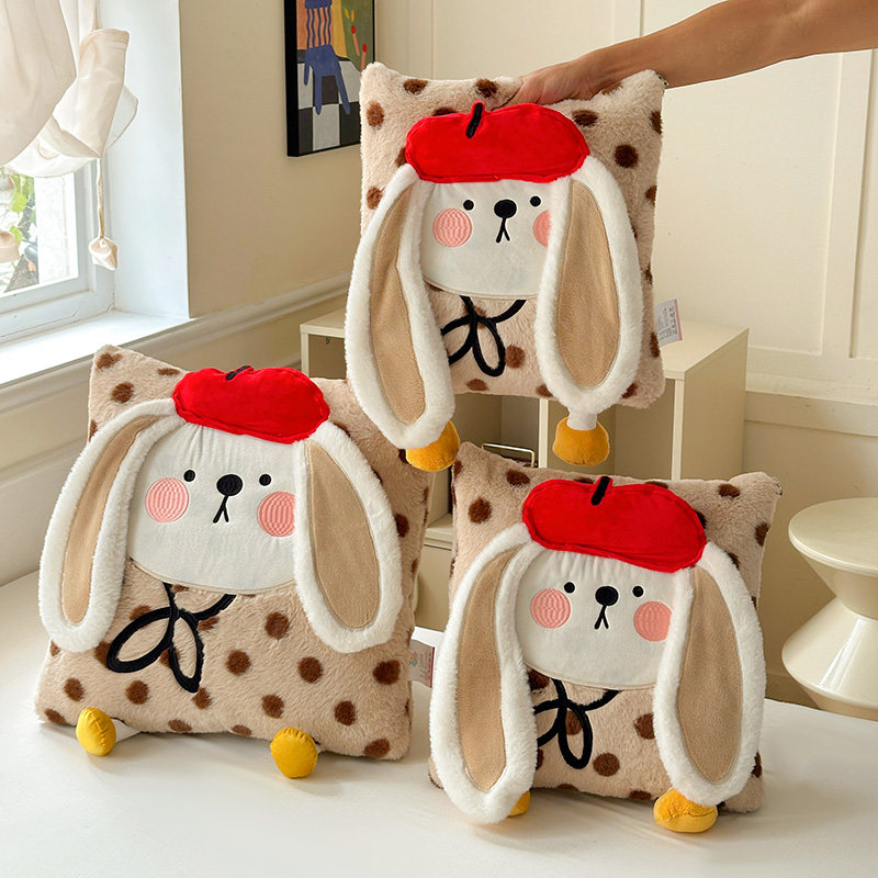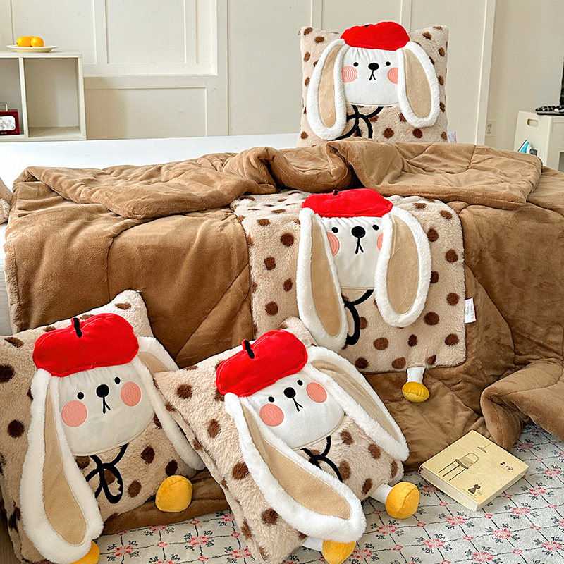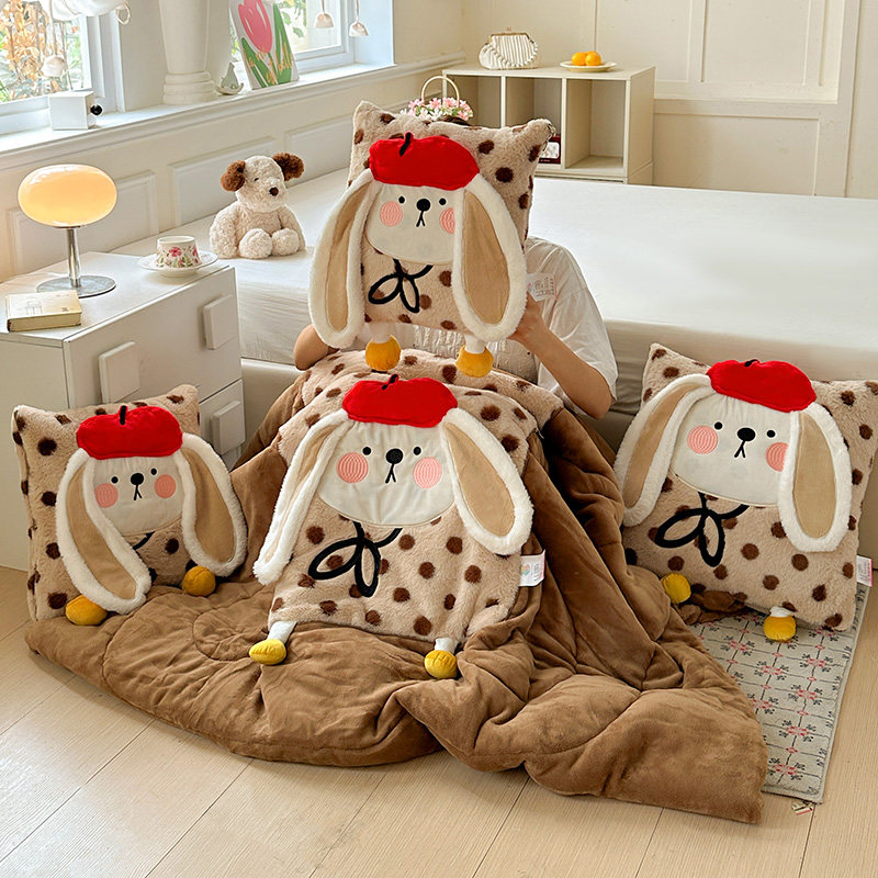 淘宝牛奶绒胭脂兔加绒加厚多功能抱枕被子二合一汽车两用可折叠单人