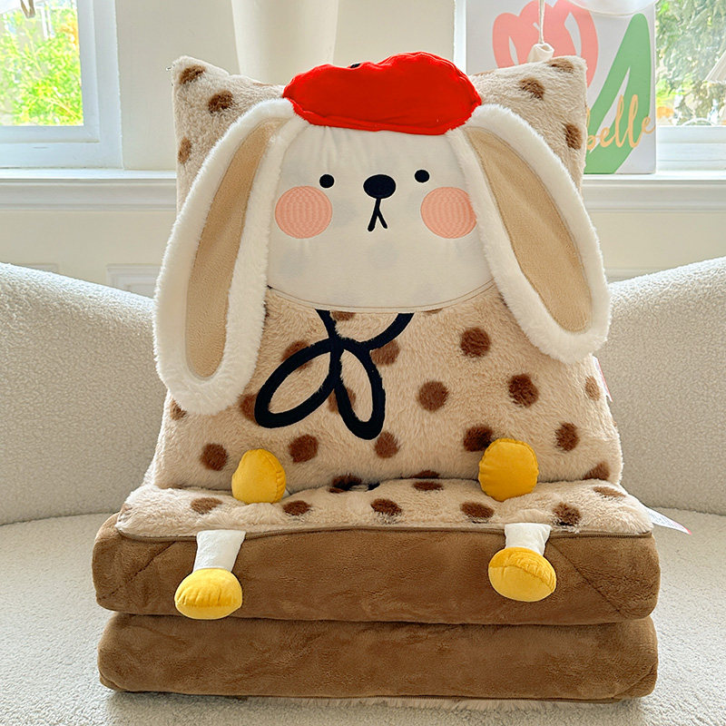 牛奶绒胭脂兔加绒加厚多功能抱枕被子二合一,集温暖与实用于一体。精选柔软亲肤的牛奶绒面料,触感细腻,保暖性佳,胭脂兔配色温馨甜美,增添居家治愈氛围。一物两用,展开为舒适单人盖被,折叠后变身可爱抱枕,轻松应对居家、办公、出行等多种场景。特别设计适合车载使用,长途旅行中可随时取用,贴心保暖。可机洗、易收纳,不占空间,是冬日必备的贴心好物。无论是自用还是送礼,都能带来温暖与便利,让舒适随行,四季皆宜。