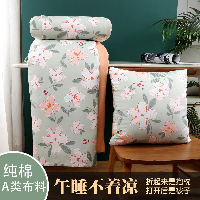 天猫全棉抱枕被子两用可拆洗办公室午睡被学生儿童车载棉花小被子春秋
