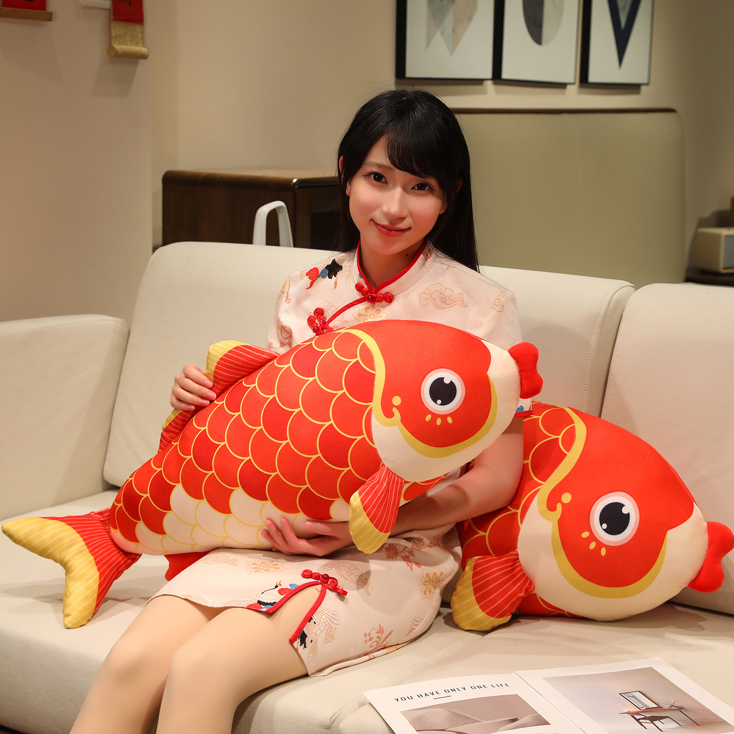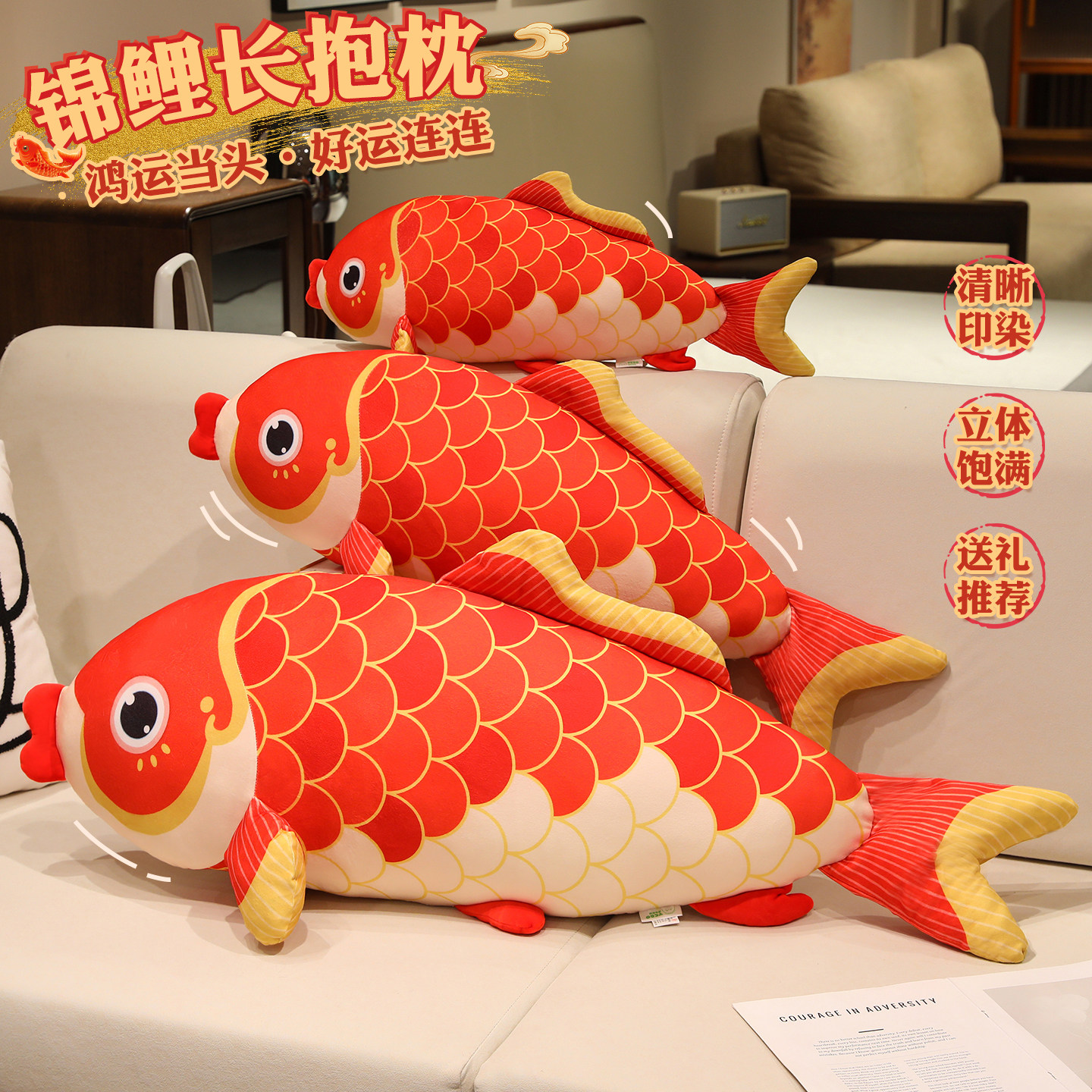 淘宝年年有鱼锦鲤抱枕红色毛绒玩具红色靠垫床上睡觉夹腿装饰新年礼物