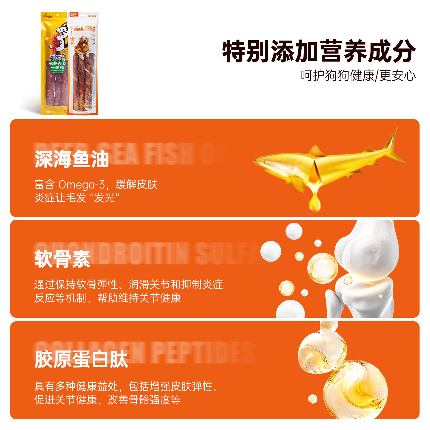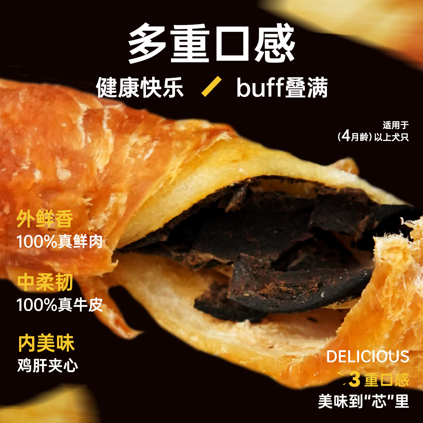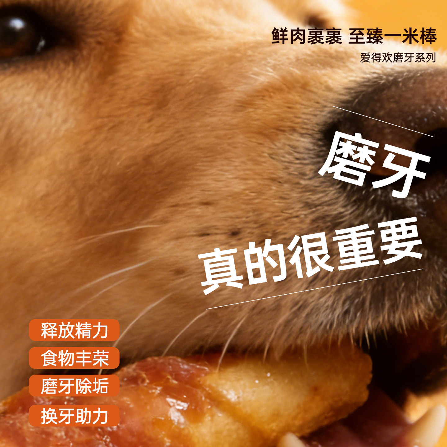 天猫爱得欢狗狗零食牛皮磨牙棒洁齿棒鸡肉鸭肉夹心一米棒耐咬宠物零食