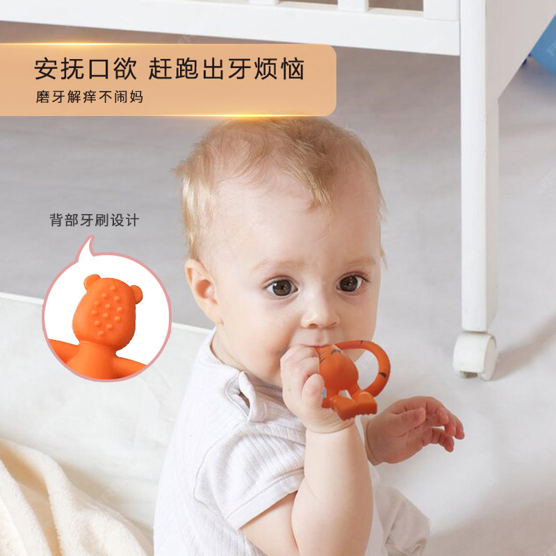 MatchstickMonkey火柴猴宝宝安抚牙胶是一款专为婴幼儿设计的磨牙棒与防吃手神器。采用食品级硅胶材质,安全无毒、柔软耐咬,有效缓解宝宝出牙期的牙龈不适。独特的小猴造型趣味十足,色彩柔和,吸引宝宝注意力,帮助转移吃手习惯。符合人体工学设计,方便宝宝抓握,锻炼手部精细动作。产品不含BPA、邻苯二甲酸盐等有害物质,可高温消毒,清洁便捷。适用于4个月以上宝宝,既是安抚玩具,也是口腔发育辅助工具,陪伴宝宝健康成长,是新手父母的安心之选。
