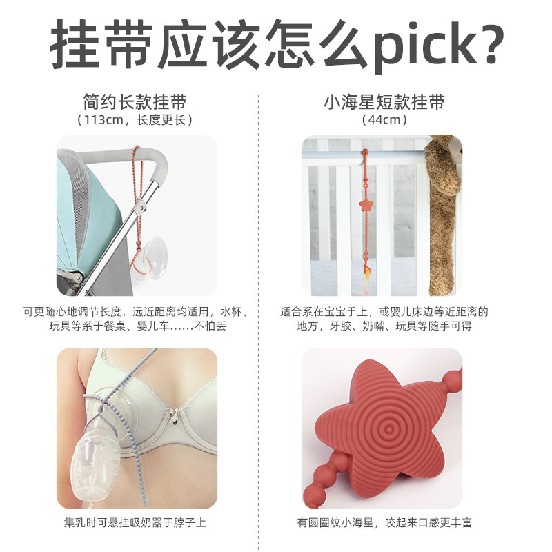天猫haakaa牙胶防掉链婴儿硅胶磨牙棒玩具挂带防丢绳子宝宝安抚奶嘴夹