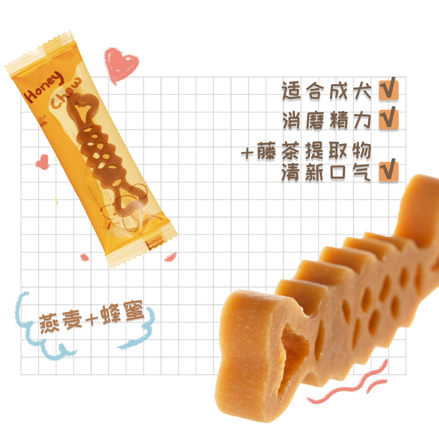 天猫毫棒狗零食蜂蜜磨牙棒成犬幼犬洁齿骨柔韧耐咬宠物小狗零食