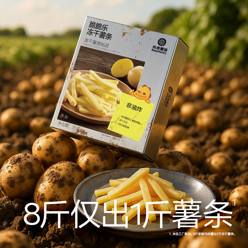 光合星球脆脆乐冻干薯条磨牙棒饼干,专为婴幼儿设计的营养健康零食。采用优质马铃薯与天然果蔬为原料,通过先进冻干工艺锁住营养与原味,口感酥脆易溶,不添加防腐剂、香精与白砂糖,呵护宝宝娇嫩肠胃。产品兼具磨牙功能,帮助缓解出牙不适,锻炼抓握与咀嚼能力。每袋独立包装,方便携带,适合6个月以上宝宝作为辅食或零食。随产品附赠科学辅食谱,助力妈妈轻松搭配营养餐。光合星球坚持天然、安全、营养的理念,让每一口都成为宝宝健康成长的安心选择。