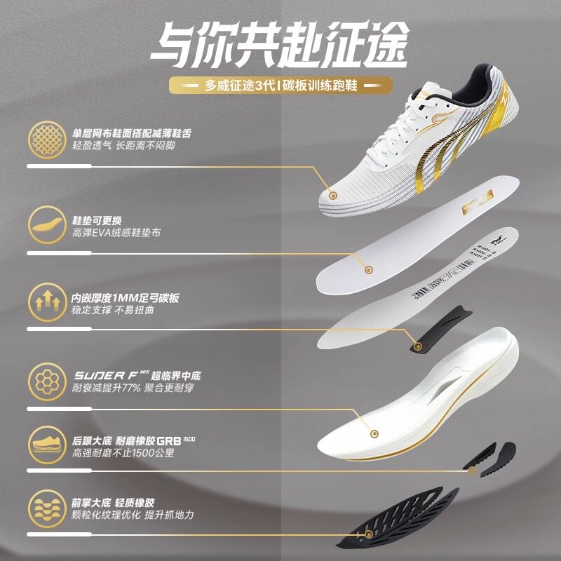 天猫多威征途3代|碳板跑鞋田径训练鞋男减震体测马拉松新款学生运动鞋