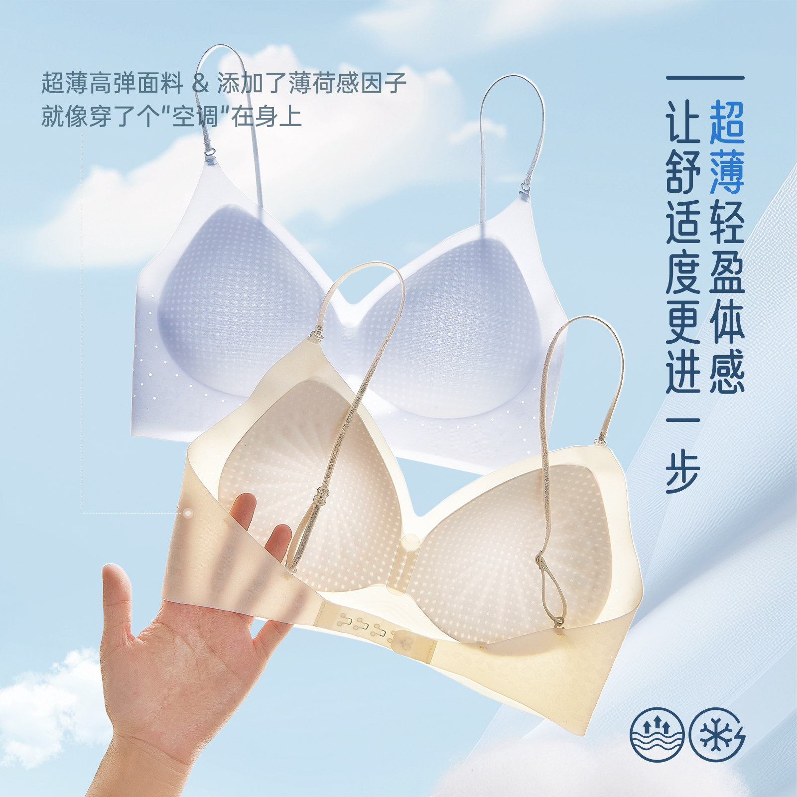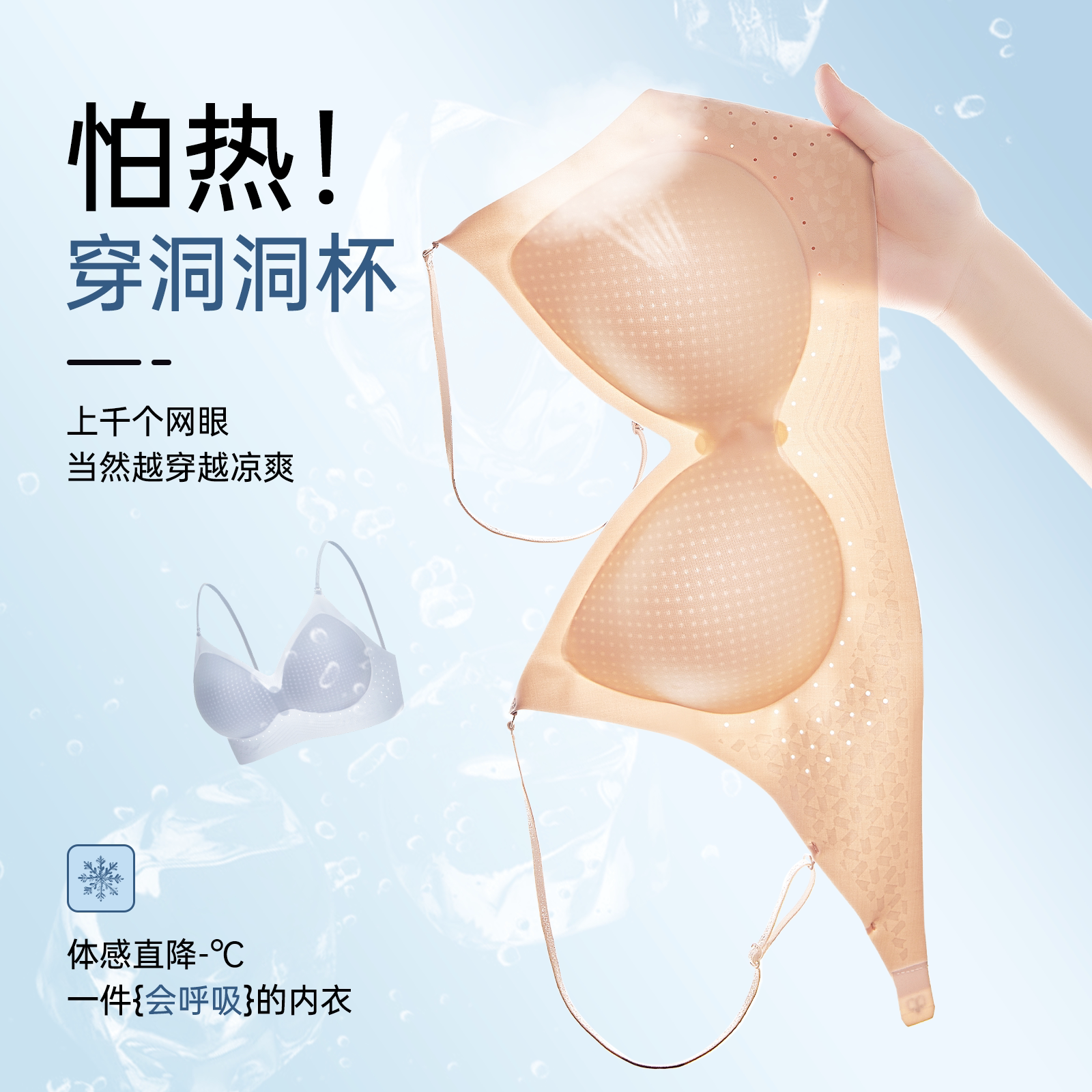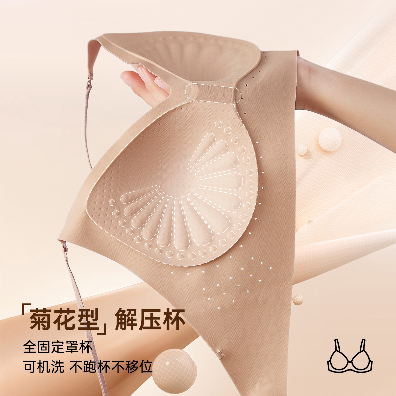 淘宝奈诱同款隐形粉底液闪光肩带内衣女U美背露背冰皮凉感固定杯文胸