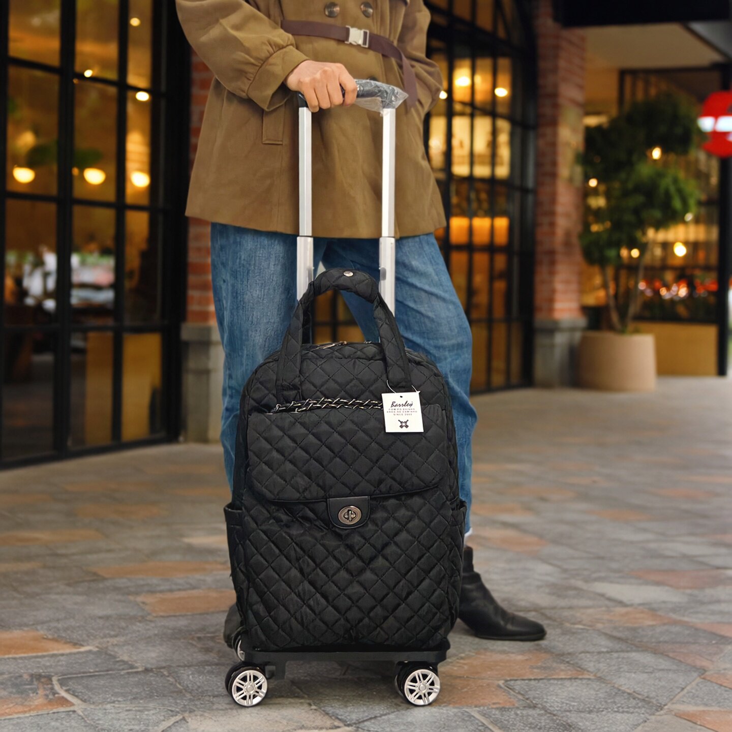 这款小拉杆包万向轮旅行包集实用与便携于一体,采用高品质牛津布材质,具备出色的防水性能,有效保护包内物品免受雨水侵袭。大容量设计,分层合理,轻松容纳衣物、电子设备等出行必需品,满足短途旅行或日常通勤需求。配备360度静音万向轮,推拉顺滑省力,可轻松应对机场、车站等复杂地形。双肩背带与拉杆可自由切换,适应不同使用场景,提升出行灵活性。轻巧机身符合登机标准,无需托运,出行更便捷。无论是商务出行还是休闲旅游,这款多功能拉杆背包都是理想之选,兼顾时尚外观与强大功能。