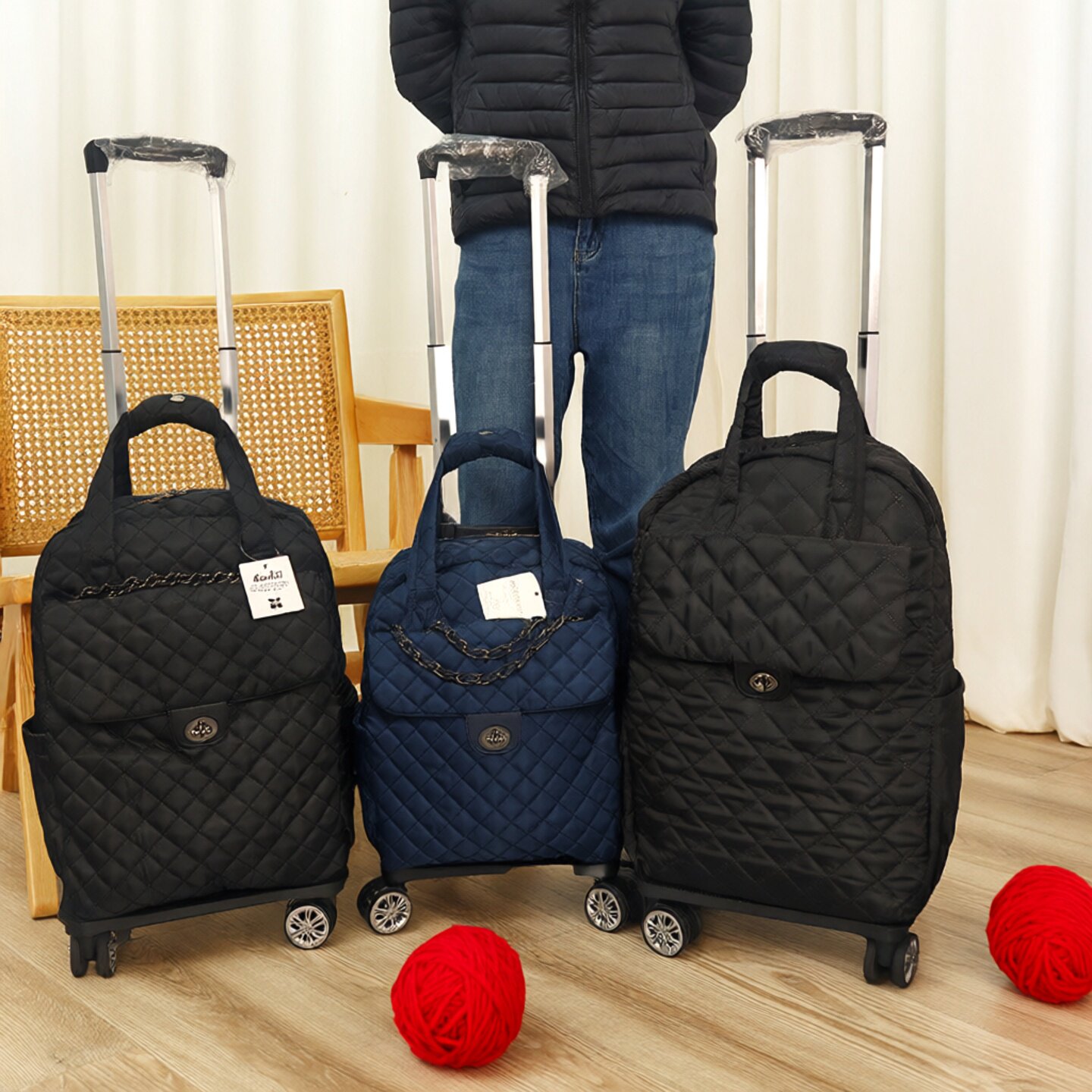 淘行李包18寸新款手提轻便包可折叠双肩背包带轮子拉杆包短途旅行包