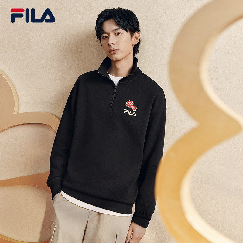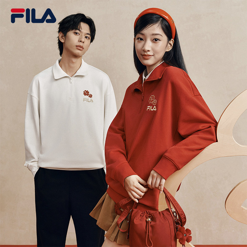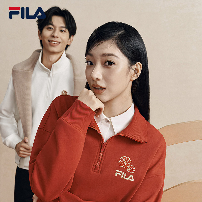 天猫马上起飞FILA斐乐情侣卫衣2026春新款海棠花半拉链红色新年款男女