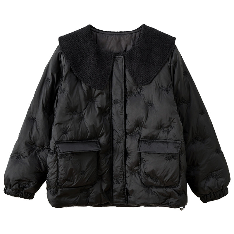 淘宝甜美小香风刺绣胖莹莹大码女装娃娃领宽松短款羽绒服冬季加厚外套