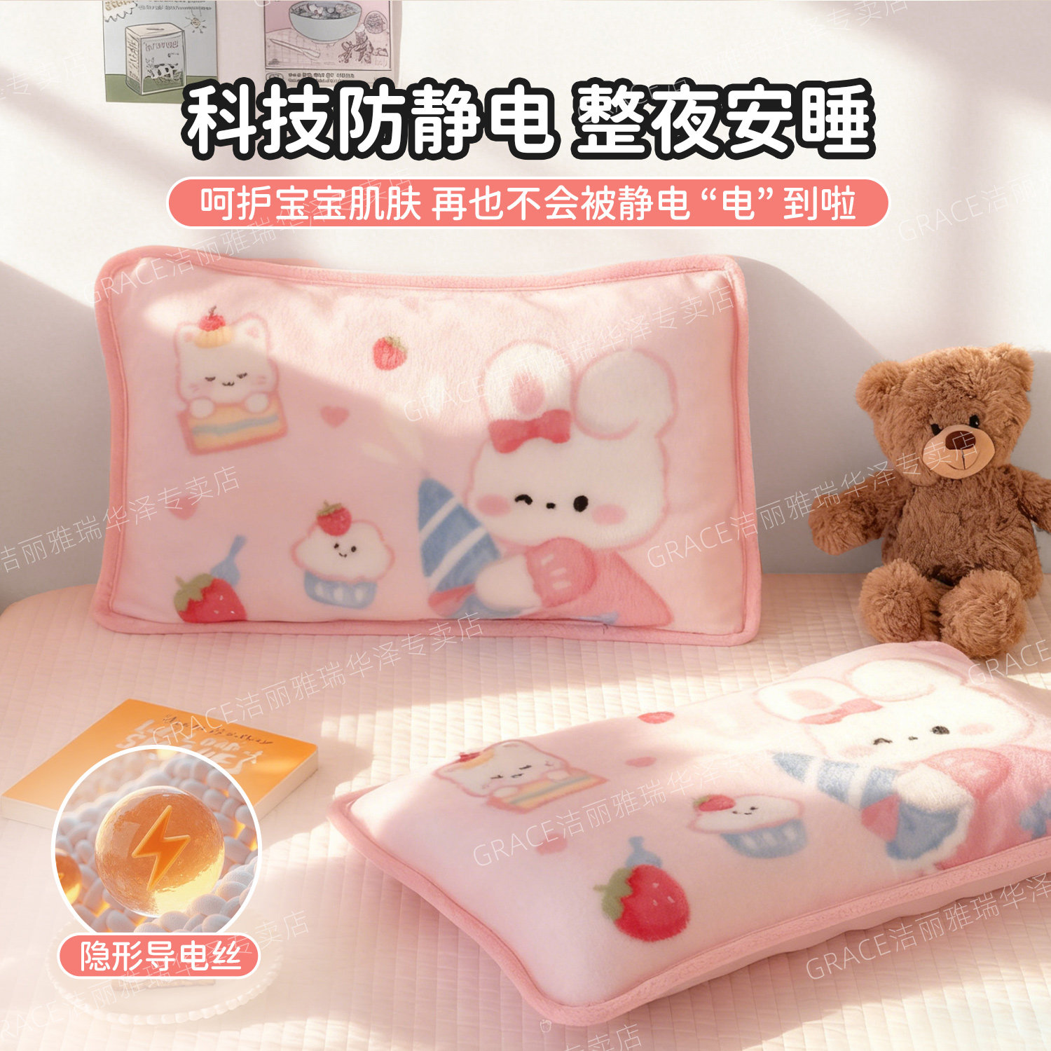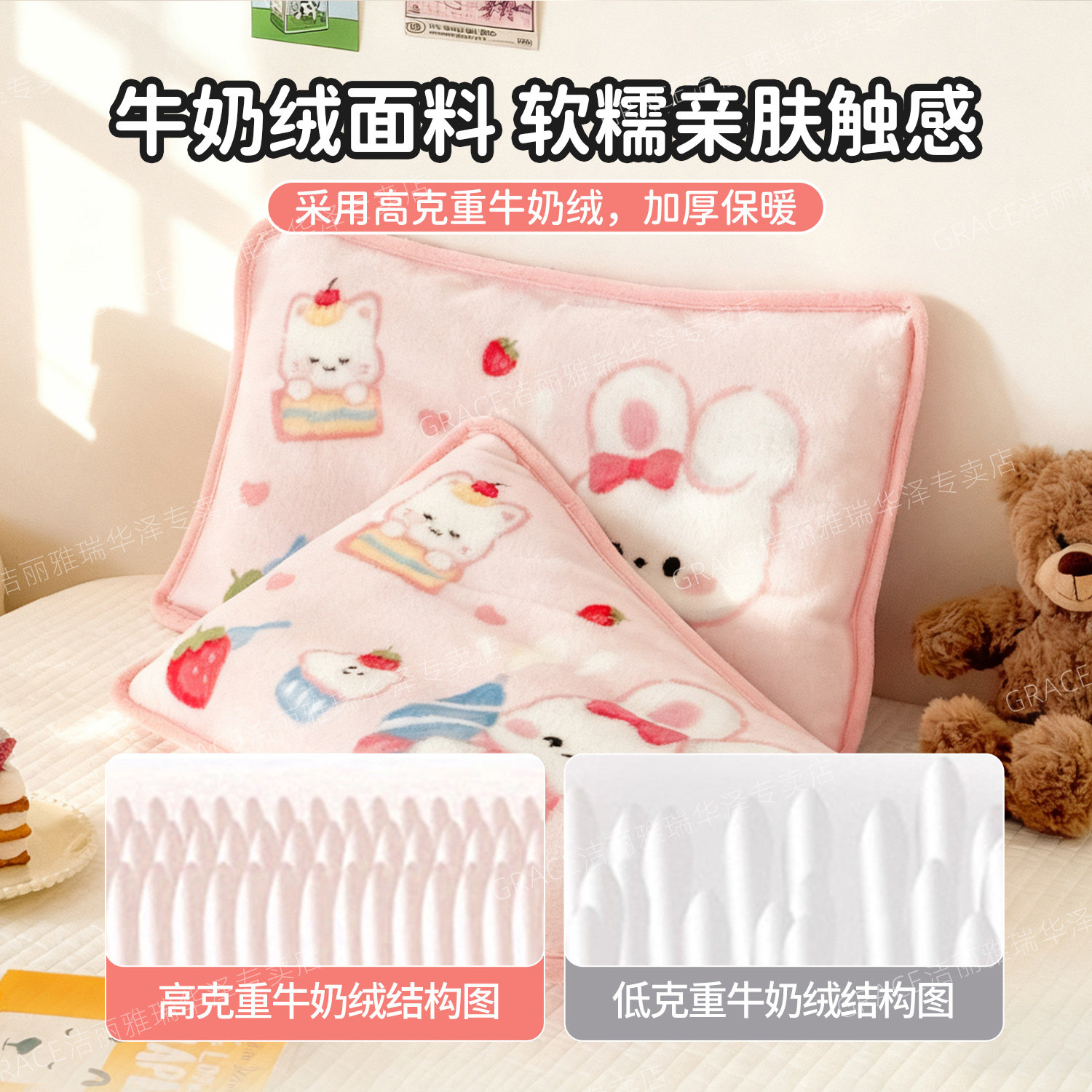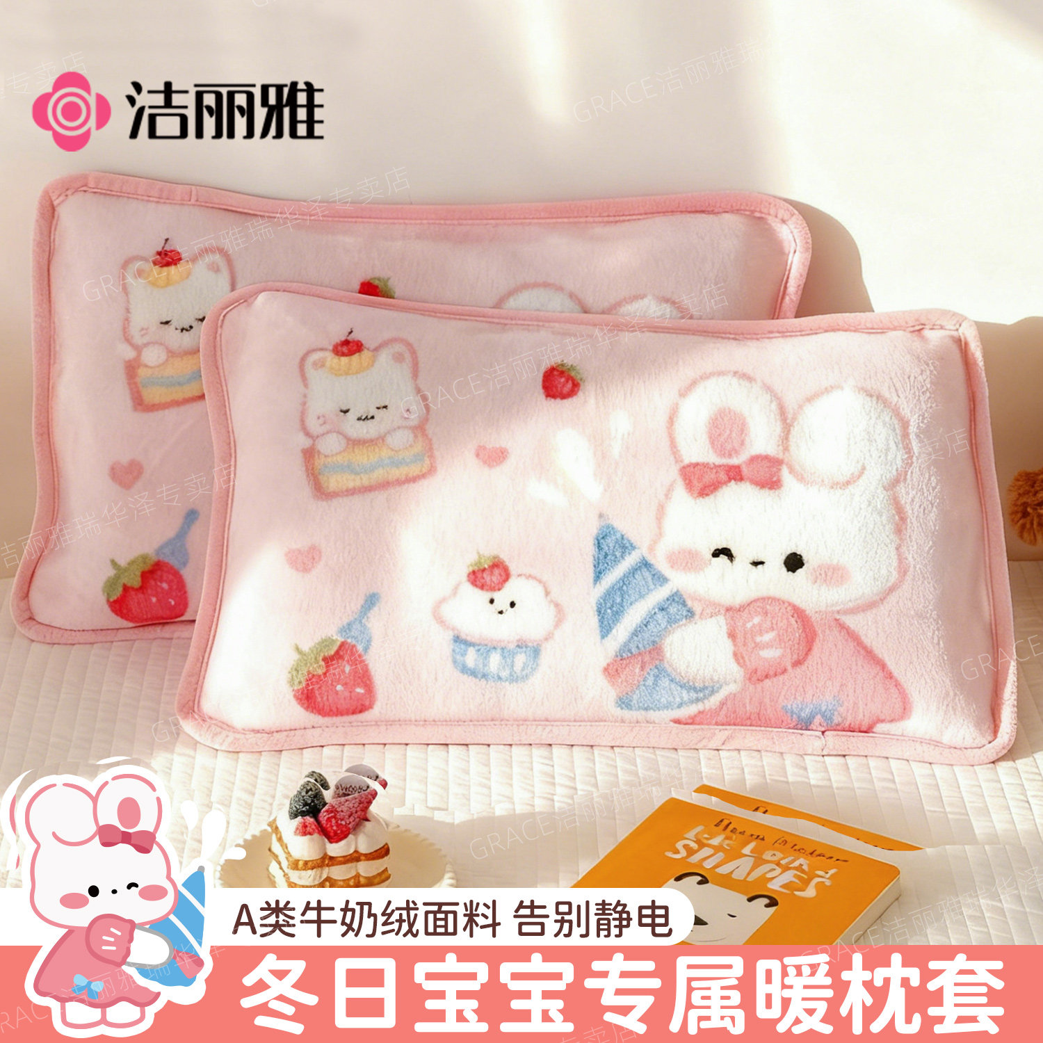 天猫洁丽雅儿童枕套牛奶绒枕套冬季卡通幼儿园宝宝学生枕头套枕芯套