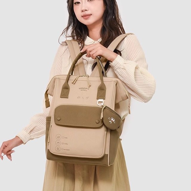 2025双肩包女简约高中大学生书包大容量电脑背包妈咪包母婴收纳包
