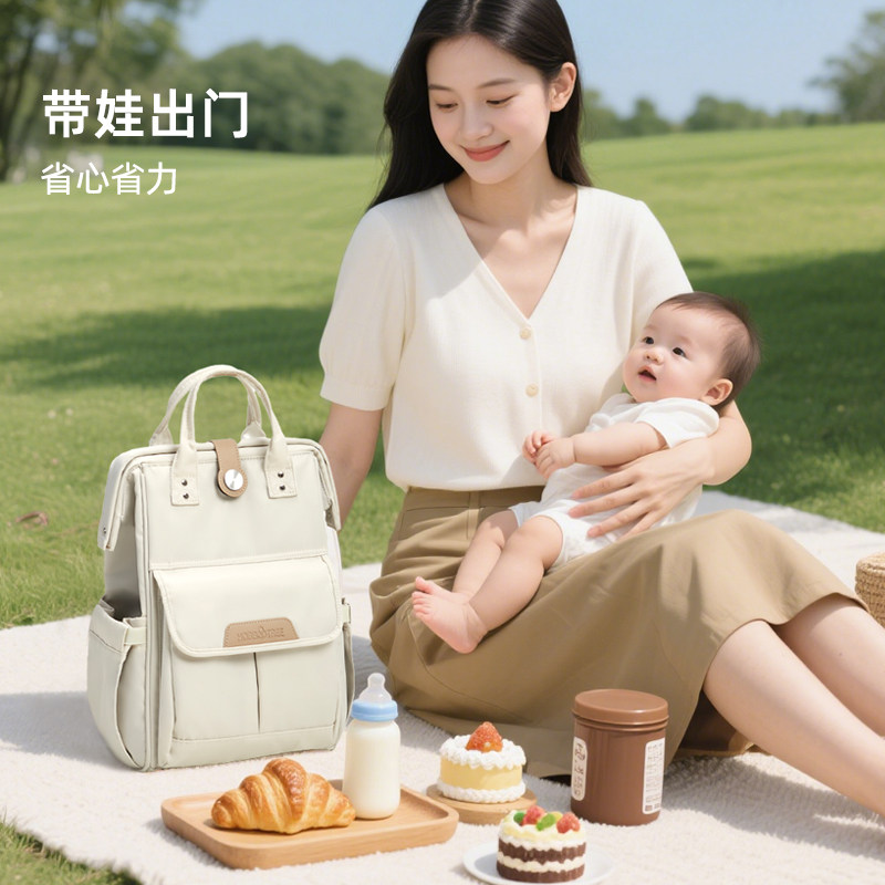 Qminica2025大容量上下分层妈咪包母婴外出轻便背包婴儿妈妈包挂