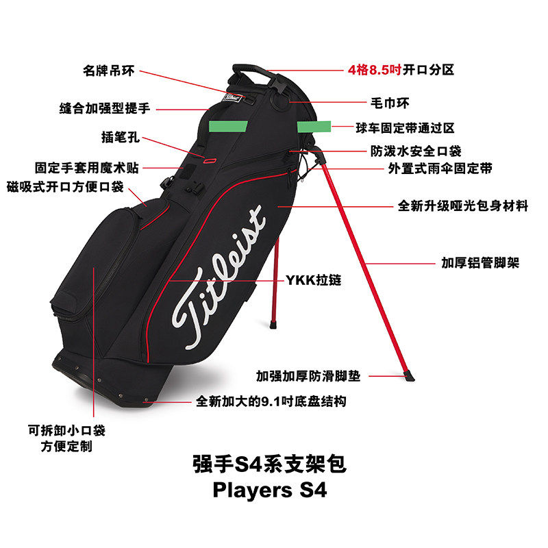 淘宝Titleist泰特利斯高尔夫球包26新品Players强手S4系支架包球杆包
