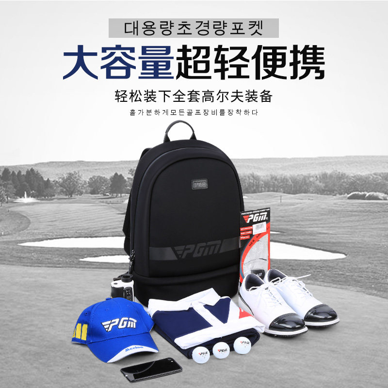 PGM高尔夫衣物包是一款专为男士设计的多功能运动背包,集双肩背、手拎、鞋包于一体,满足高尔夫爱好者出行需求。采用轻便耐磨材质,大容量主仓可轻松收纳球衣、帽子、配件等,独立鞋仓设计有效隔离异味,保持整洁。人体工学肩带减压透气,长时间背负舒适不勒肩;侧边拉链袋方便取放小物,顶部提手便于短途手拎。整体设计简约实用,兼顾时尚与功能性,无论是下场打球还是日常训练,都是理想伴侣。PGM以专业品质,助力每一次挥杆从容自信。