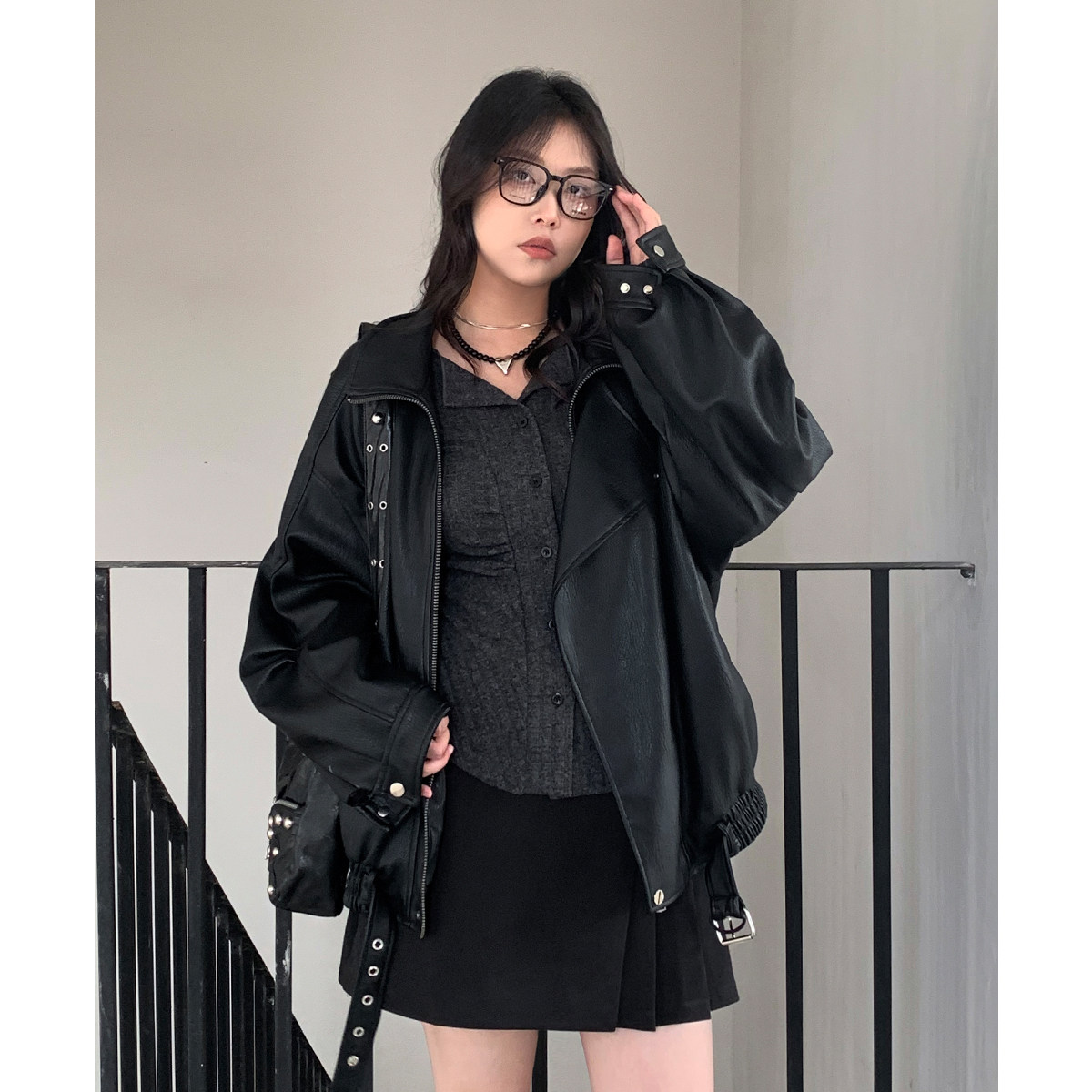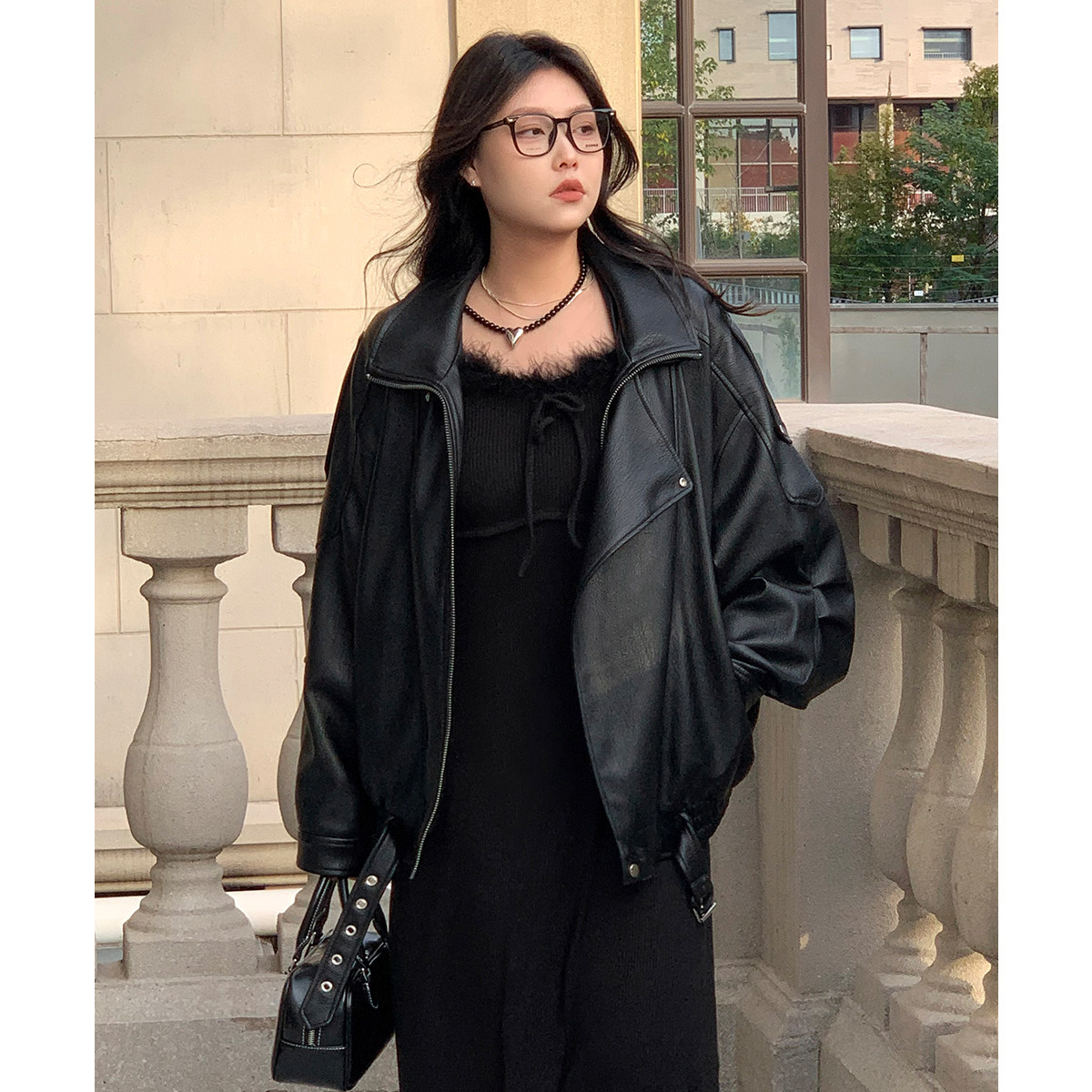 安妮不火 朋克拽姐甜酷风单排扣皮衣女2025早秋新款微胖大码外套