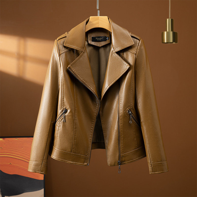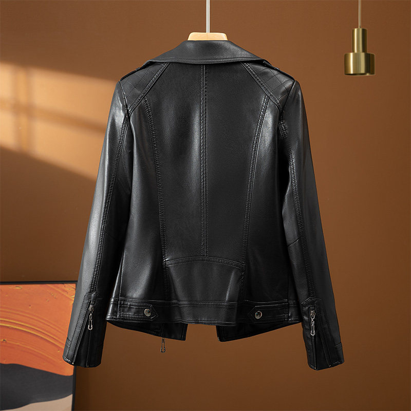 复古韩系翻领口袋单排扣夹克外套2025秋季新款简约长袖女皮衣V894